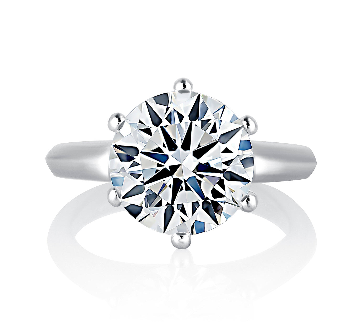Coming from the A.JAFFE Classics™ collection, this classic solitaire engagement ring highlights a round center stone supported by six prongs. The solitaire setting of the ring is sure to give the center stone all the attention it deserves. Made for the modern bride who prefer a classic look.
