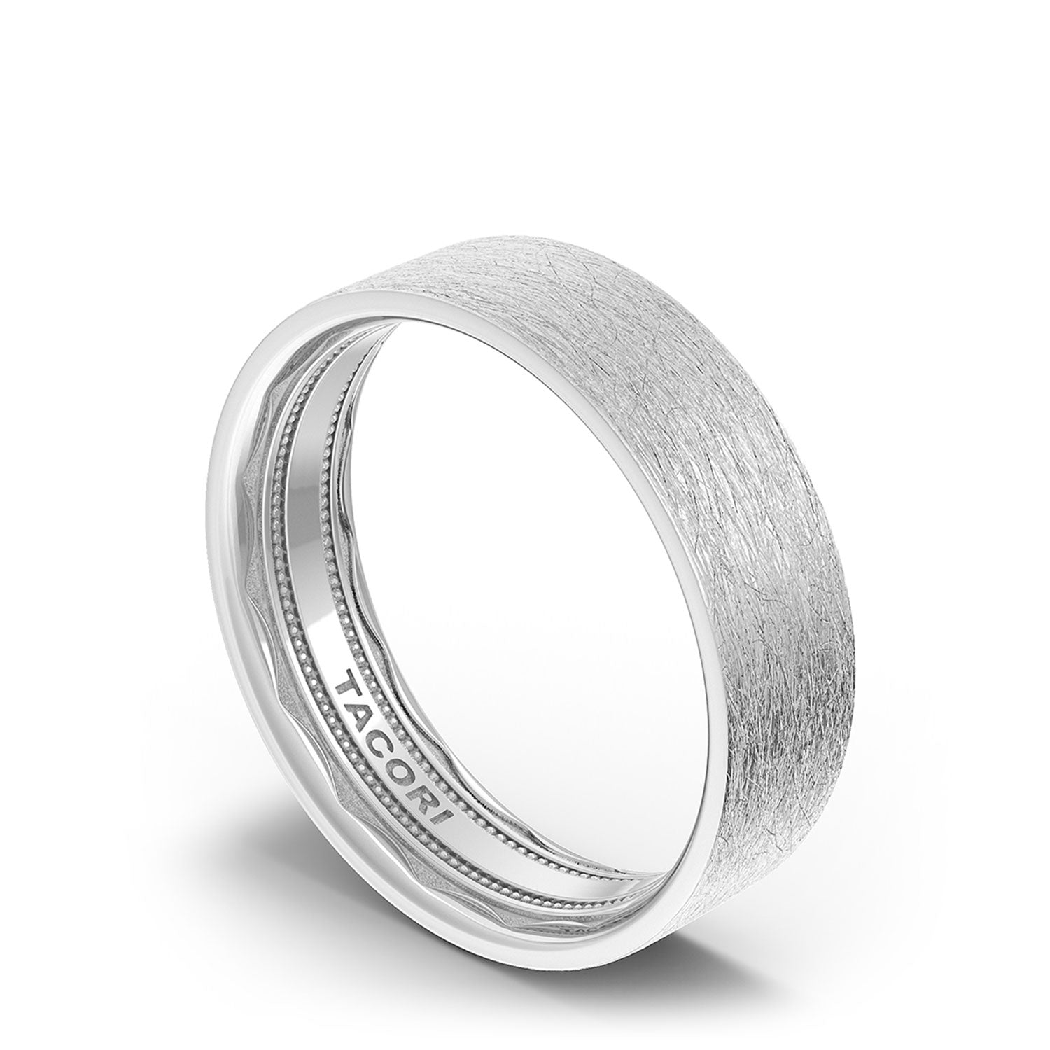 The handsome brushed texture that decorates the flat-top exterior of this ring has a timeless appeal, while the interior is decorated with sculpted crescent detail. A soft-comfort fit provides all-day wearability.
