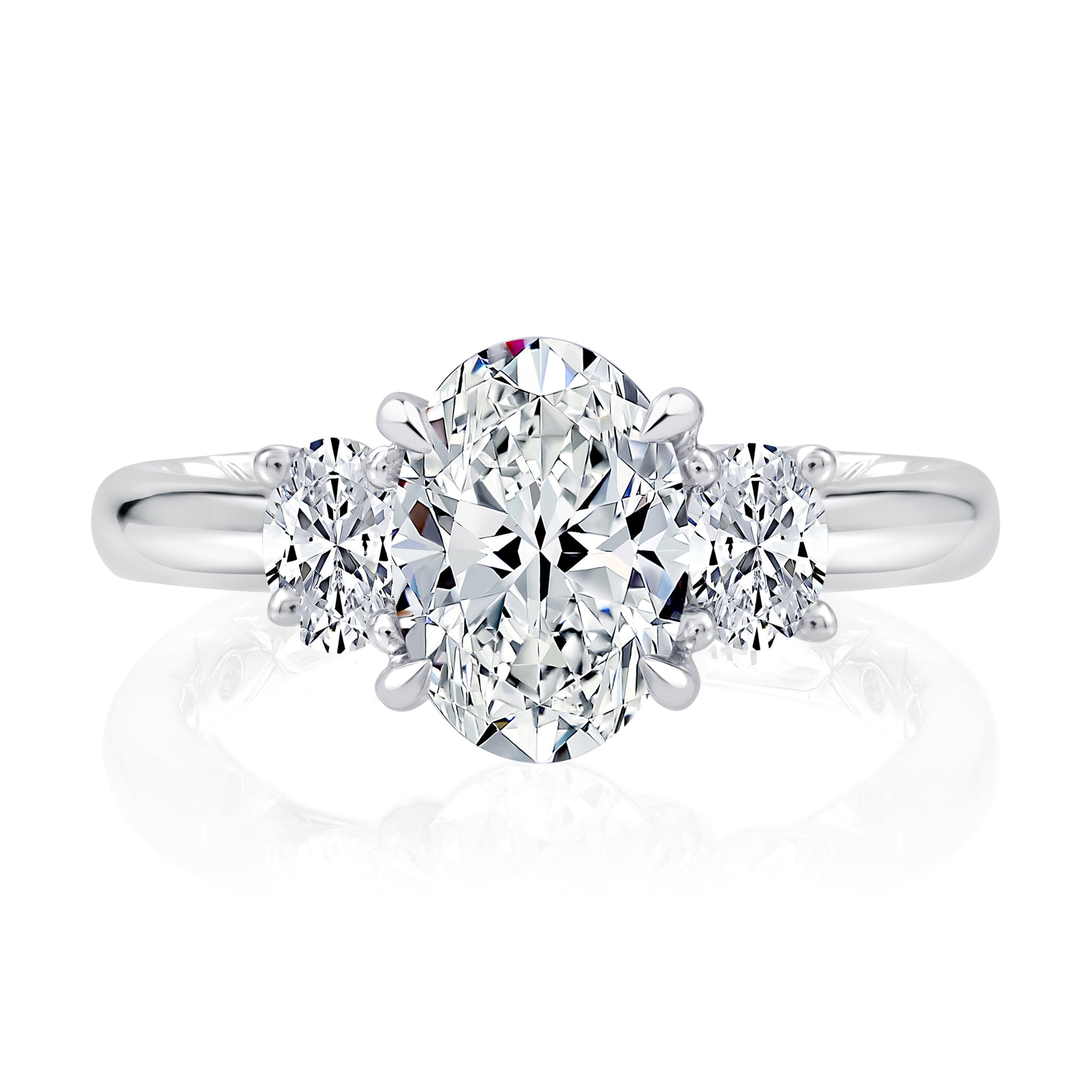 Classic Trellis Three Stone Round Diamond Engagement Ring