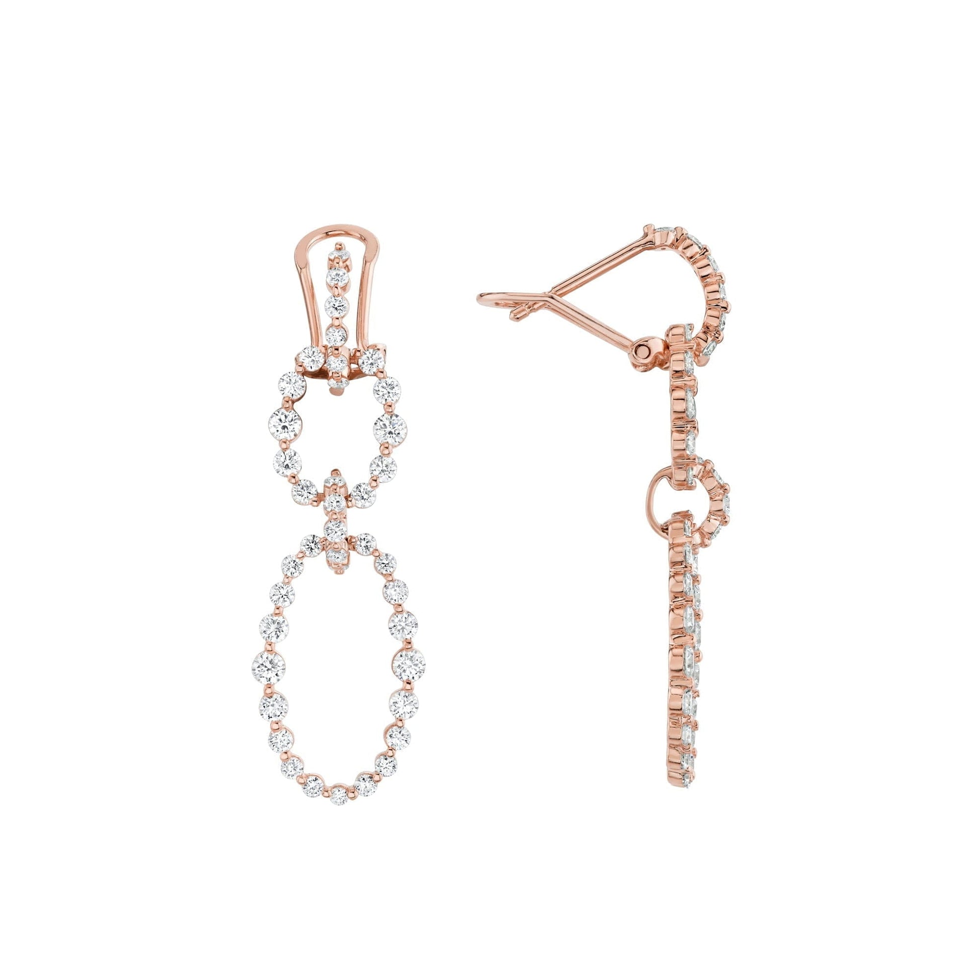 14K Rose Gold Tapered Diamond Fish Wire Drop Earrings