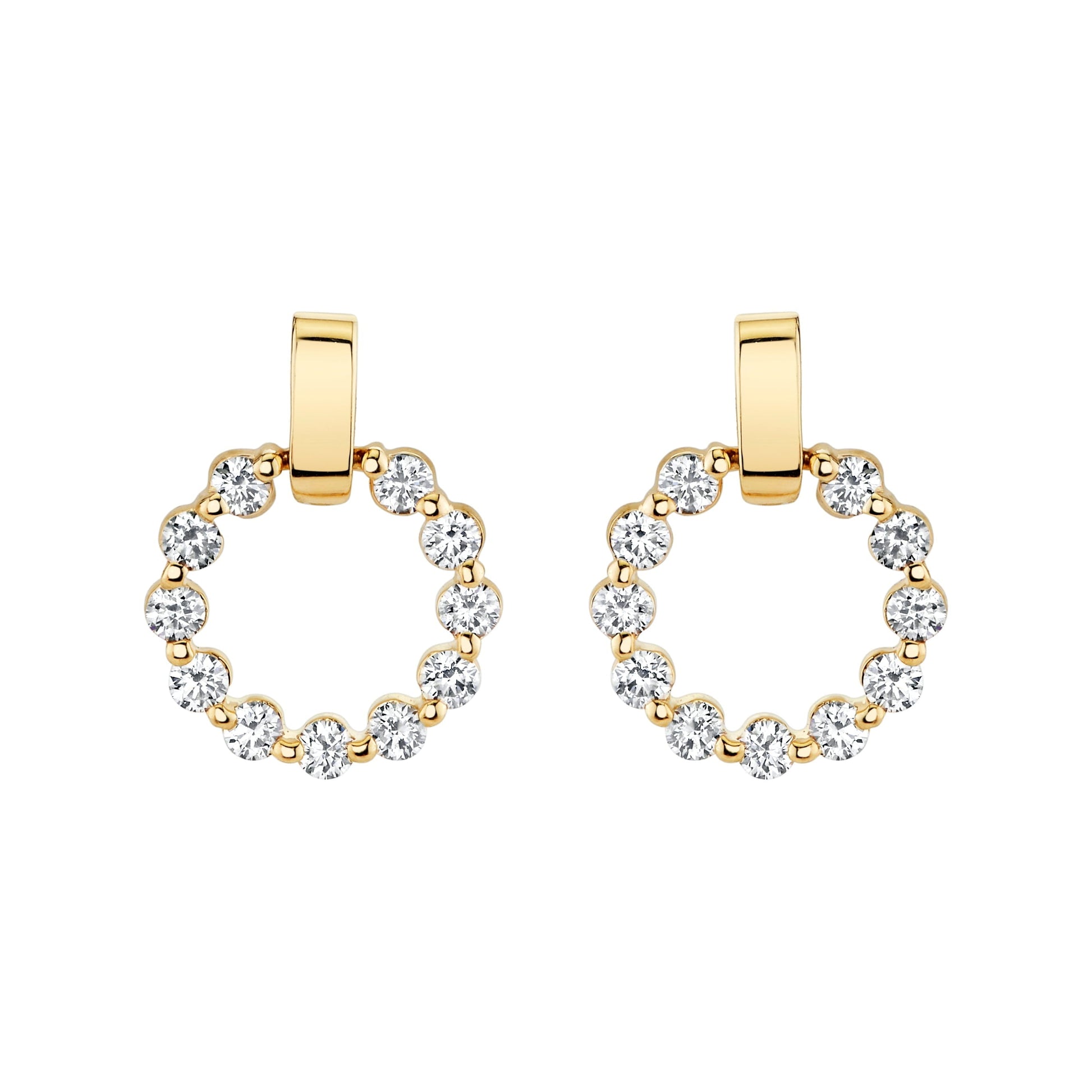 The Cloud Single Drop Earrings are a refined expression of the collection’s iconic shared prong motif, expertly crafted to highlight both elegance and contemporary design. These single drop ring earrings are suspended from a polished, smooth gold bar, creating a striking vertical silhouette that enhances the wearer’s profile. Designed with a post and butterfly backing, they provide secure and comfortable wear, making them suitable for extended use. Ideal for those who value meticulous craftsmanship and understated luxury, these earrings effortlessly elevate any outfit with their distinctive form and expert detailing.