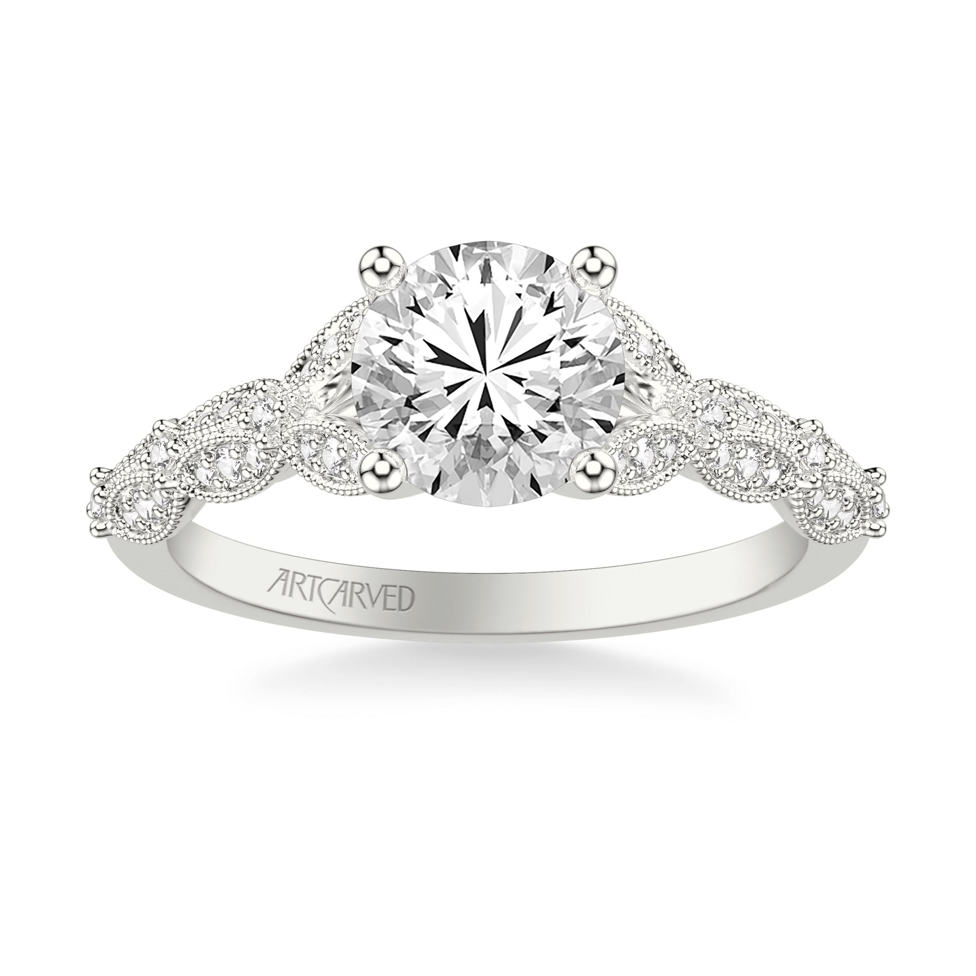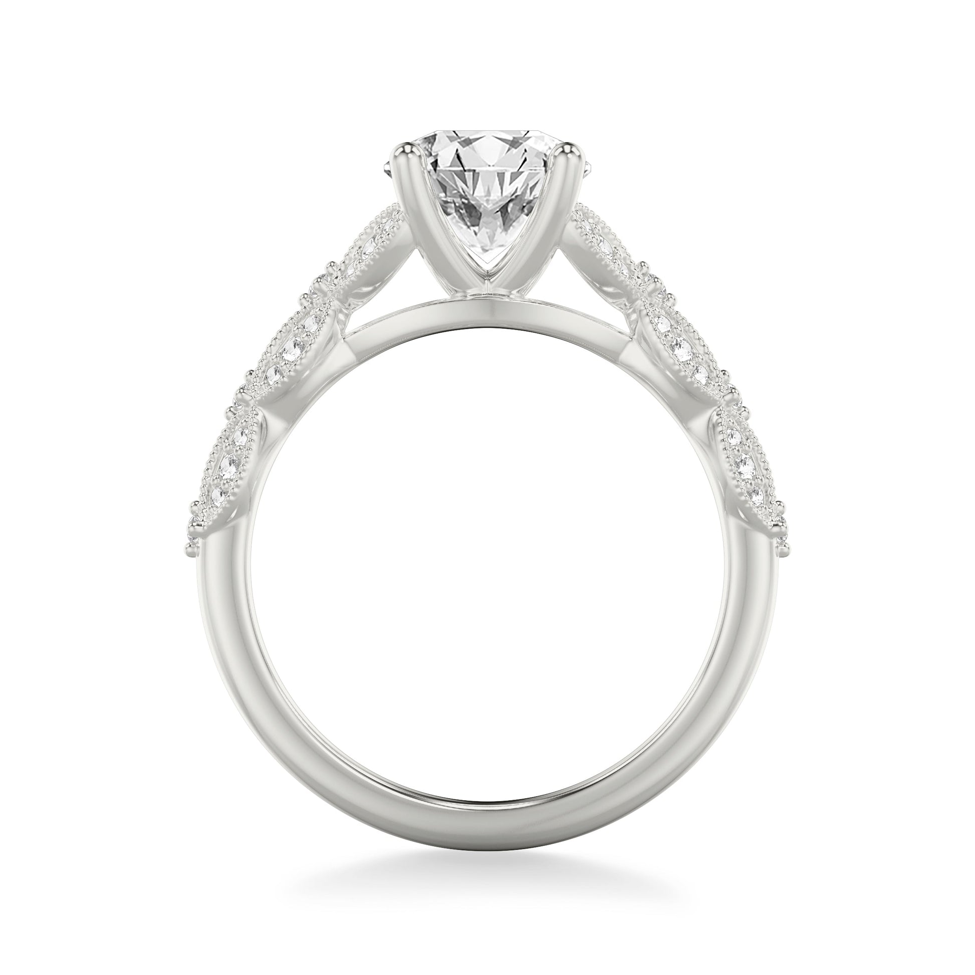 Floral Engagement Ring with Milgrain Petals and Knife Edge Shank