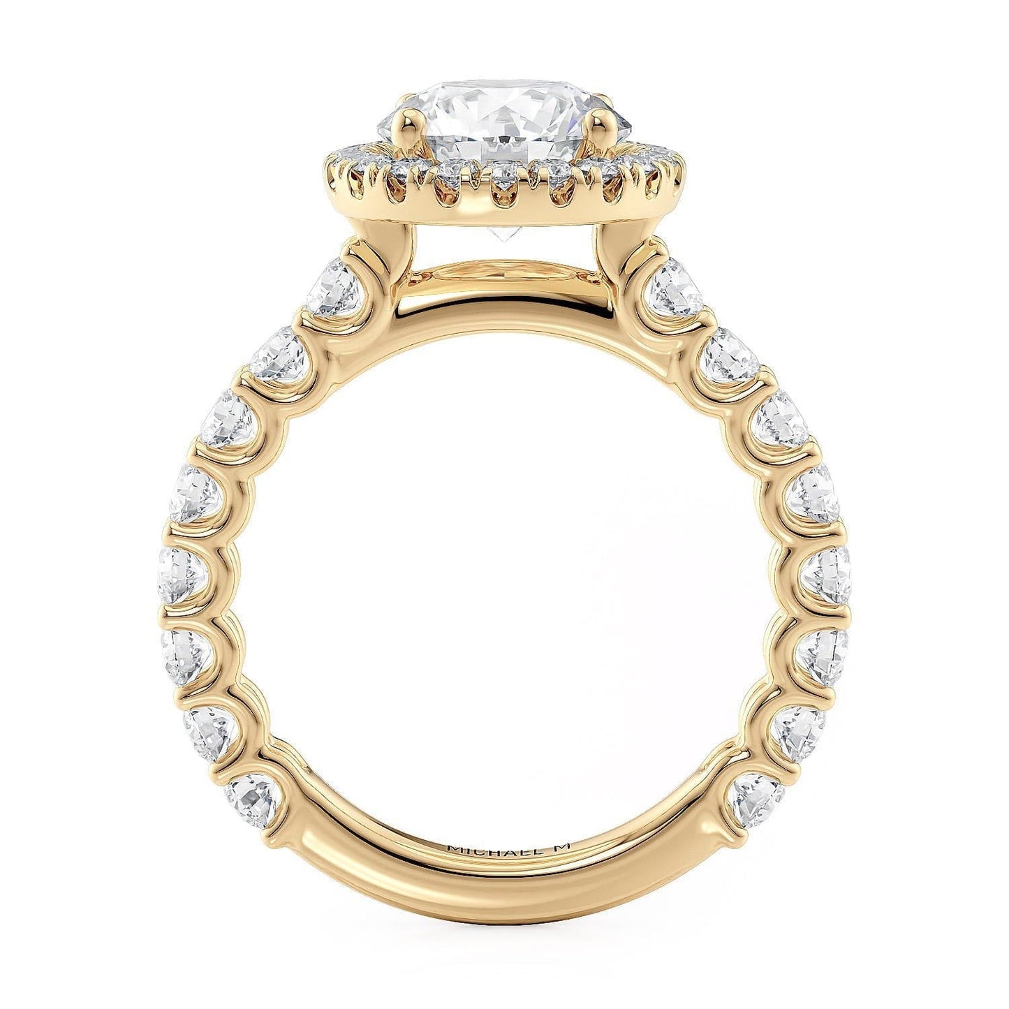 Exquisite Europa R801-2 halo-style ring with round diamonds on shank. Accommodates 2 CT center stone. Side diamonds have G color, VS clarity. Available in 18K Gold or Platinum.