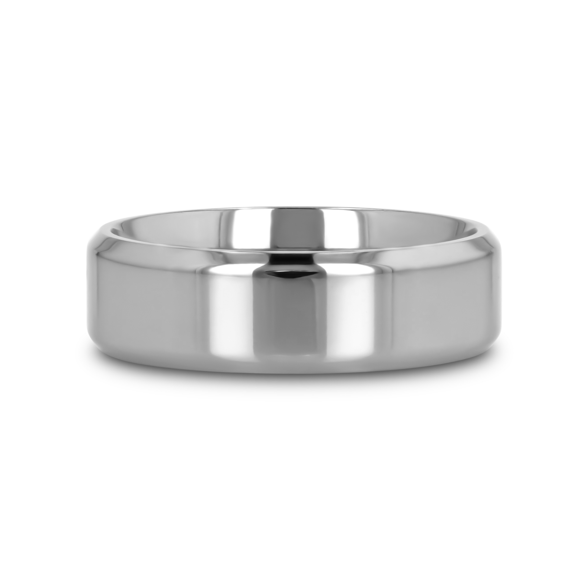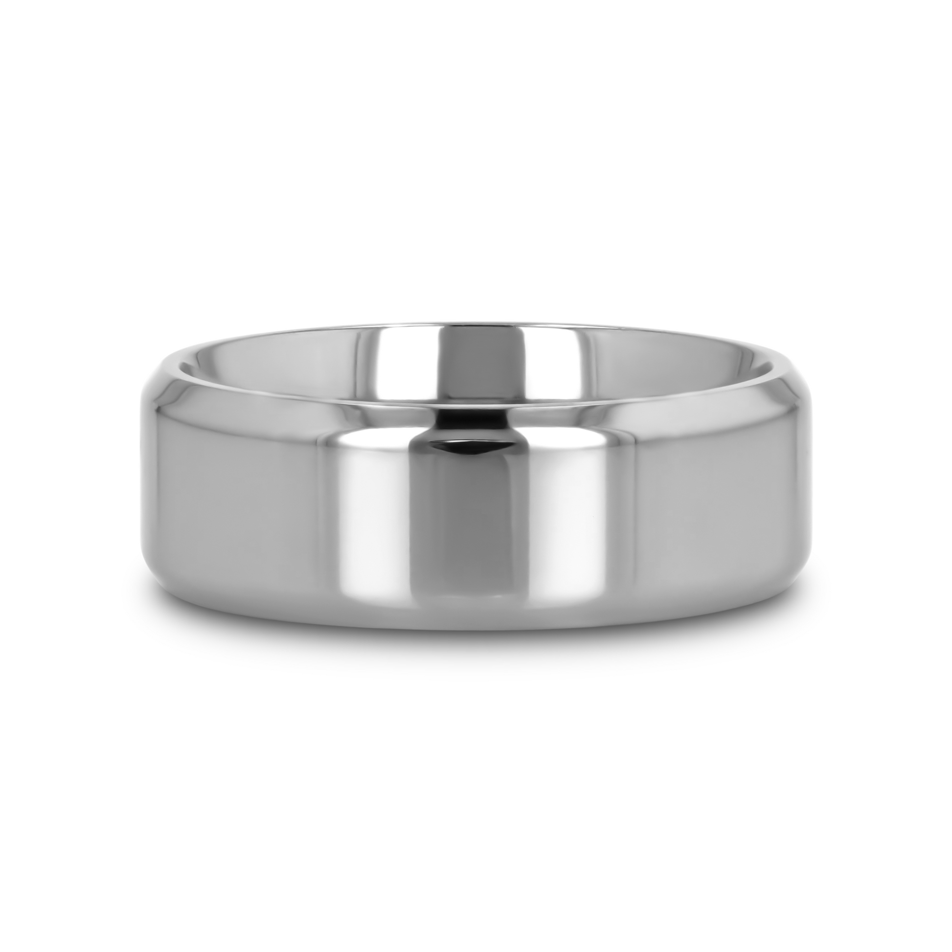 CORONAL Men's Polished Finish Beveled Edges Titanium Wedding Ring with Raised Center - 6mm & 8mm