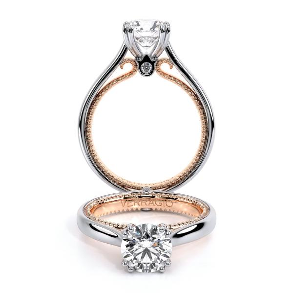 Elevate your love story with the timeless elegance of the Verragio Couture 0418R Women's Engagement Ring. Featuring a simple prong-set setting and antique beading, this chic ring is a classic choice for the modern bride.