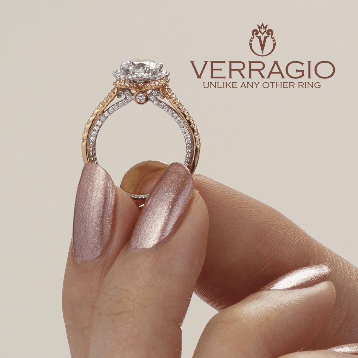 Elevate your engagement with the bold and flamboyant Verragio Women's Engagement Ring from the Couture collection. This stunning piece, featuring rose gold and diamond accents, is perfect for a woman who wants to make a statement. Starting at $6,050.00 USD.