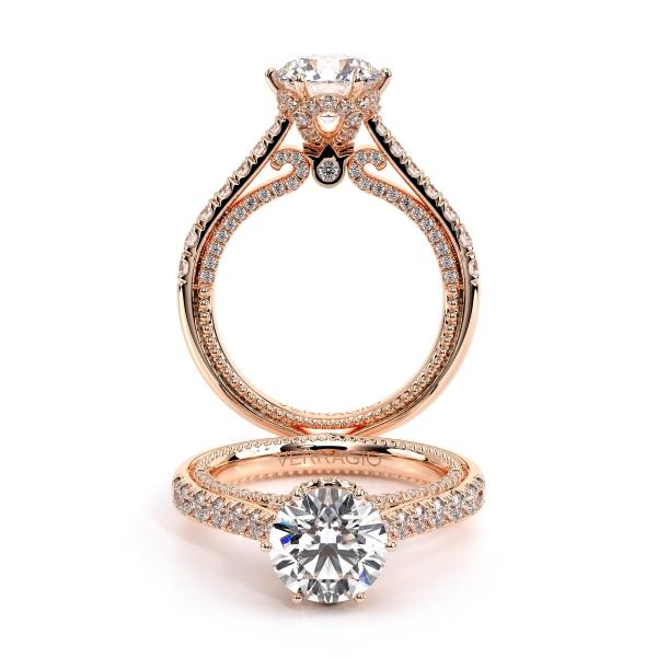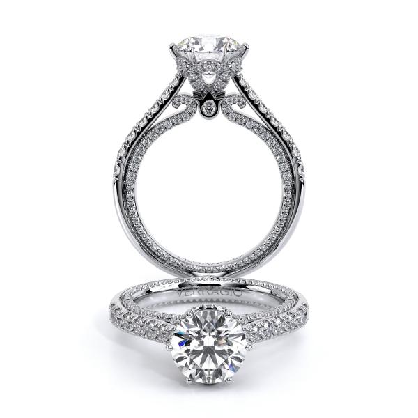 Elevate your engagement with the exquisite Verragio Women's Engagement Ring from the COUTURE collection. Featuring a stunning diamond tiara and pave set cathedral diamond band, this ring exudes elegance and sophistication. Starting at $5,000.00 USD.