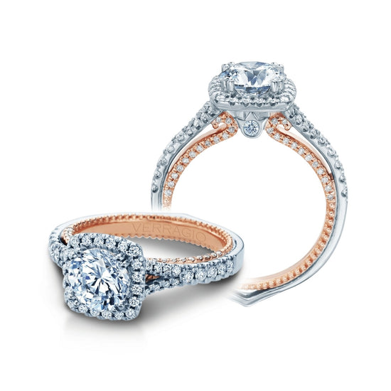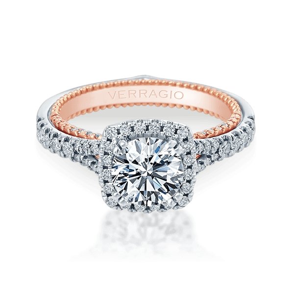 Elevate your love with the Verragio Women's Engagement Ring from the Couture collection. With a split diamond shank and cushion-shaped diamond halo, this exquisite piece is a symbol of timeless devotion. Starting at $5,200.00 USD.