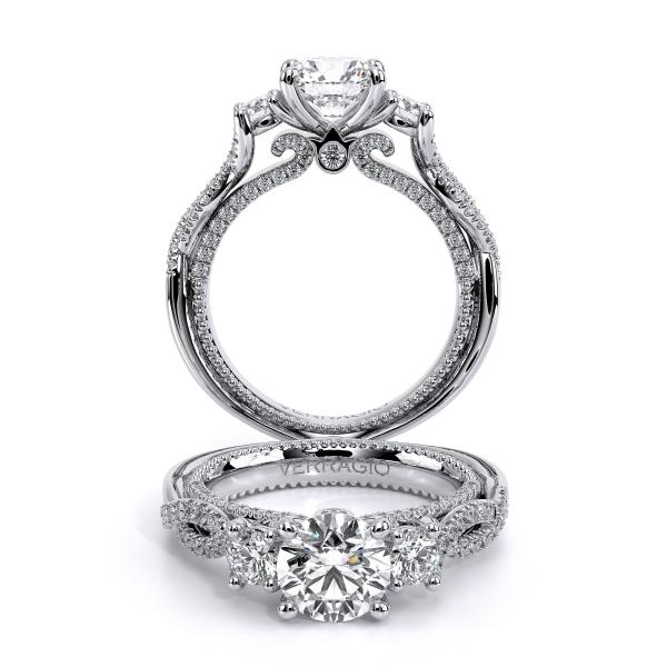 Elevate your style with Verragio's Women's Engagement Ring from the Couture collection. This exquisite piece features a stunning three stone design and intricate details, starting at $6,050.00 USD. Complete the look with matching wedding bands for a truly sophisticated ensemble.