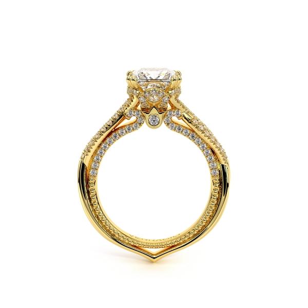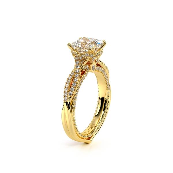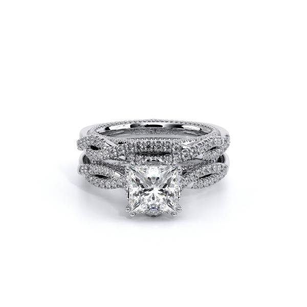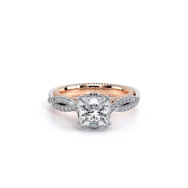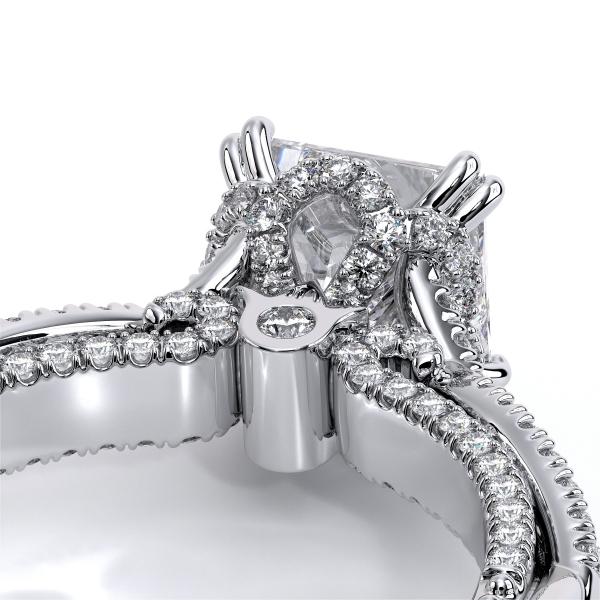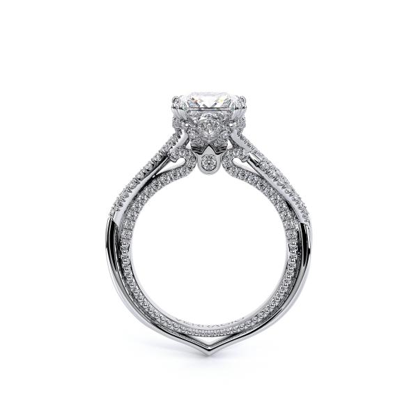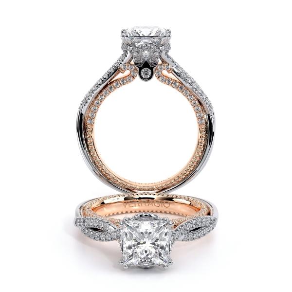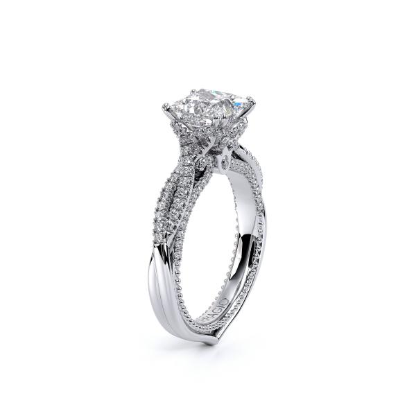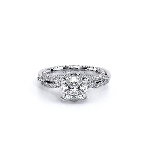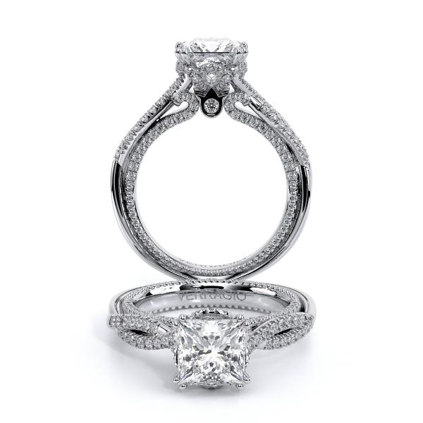 Elevate your engagement with the exquisite Verragio Women's Engagement Ring from the Couture collection. The COUTURE-0451P Floral Tiara Princess Engagement ring is a true masterpiece, featuring a pave set Diamond Twist band and Verragio Signature Beading, a luxurious choice for the discerning bride.