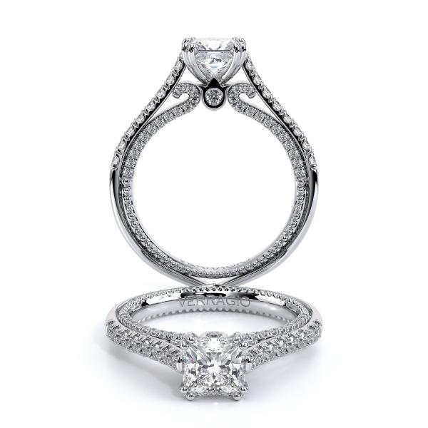 Elevate your love story with the Verragio Women's Engagement Ring and Matching Wedding Band from the COUTURE collection. This timeless piece features a pave set cathedral diamond band, half diamond Riviera, Verragio Crest, and Signature Beading. Shop now at Birmingham Jewelry.