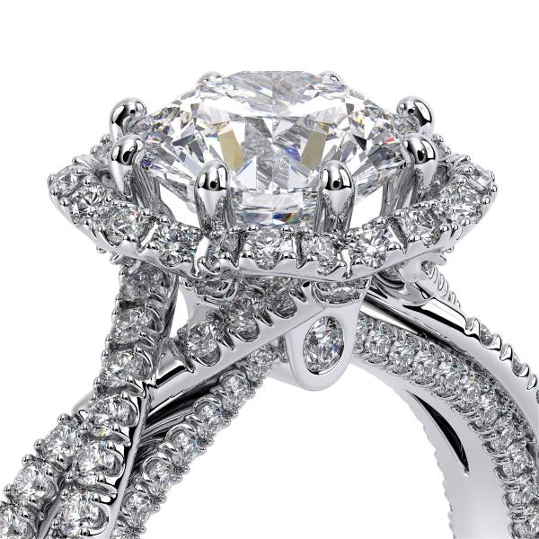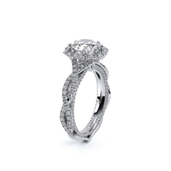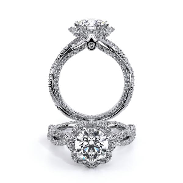 Elevate your bridal look with the Verragio Couture-0466R Blossom Petal Round Floret Halo Engagement Ring. Featuring a twisted diamond band and Verragio Crest, this luxurious design exudes sophistication. Pair with the matching wedding band for a truly unforgettable ensemble.