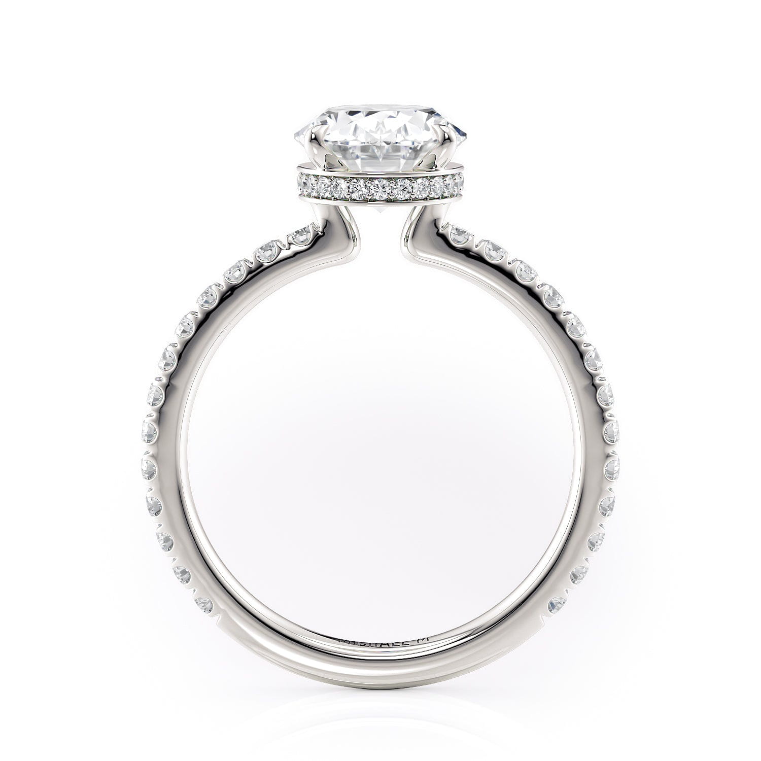 One of our highly sought-after designs is the Crown R715-2 Oval. This elegant ring is expertly crafted with a 2 carat oval-cut centerpiece, embellished with stunning round diamonds on the shank and a hidden halo surrounding the center stone.