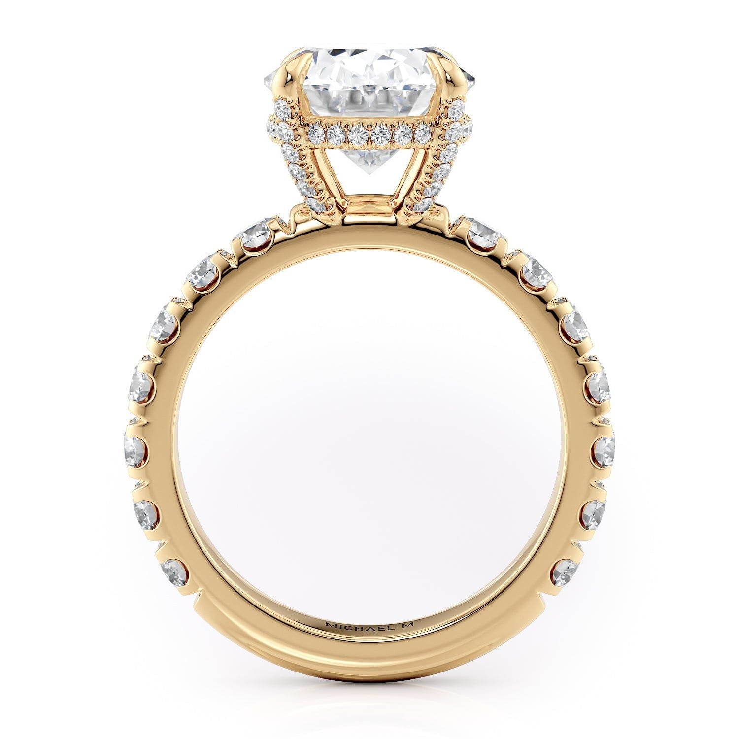 This MICHAEL M engagement ring is adorned with side diamonds handpicked by a certified MICHAEL M gemologist, each side stone has a minimum average color of G, a minimum average clarity of VS, and are hand-placed in an elegant prong setting by one of MICHAEL M’s master artisans.