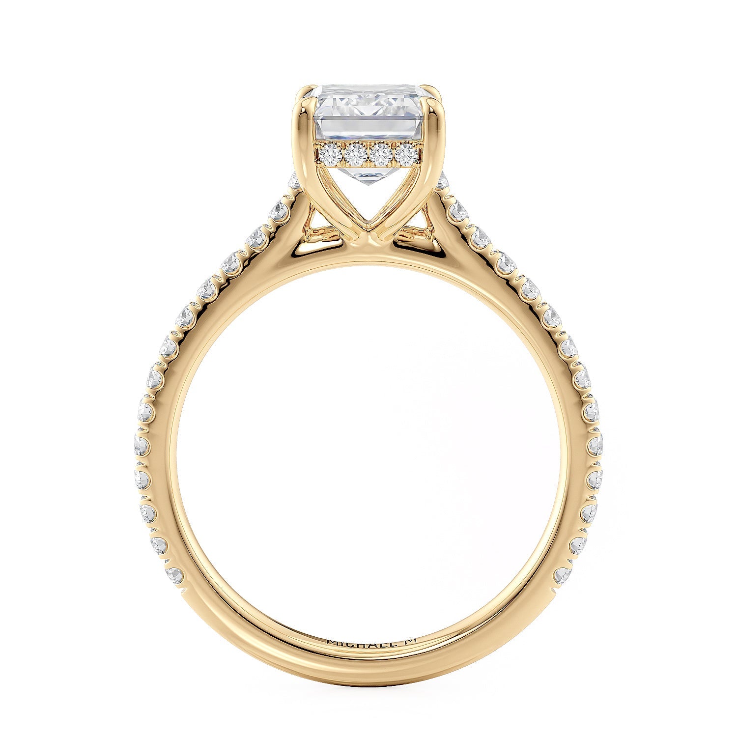 This MICHAEL M engagement ring is adorned with side diamonds handpicked by a certified MICHAEL M gemologist, each side stone has a minimum average color of G, a minimum average clarity of VS, and are hand-placed in an elegant prong setting by one of MICHAEL M’s master artisans.