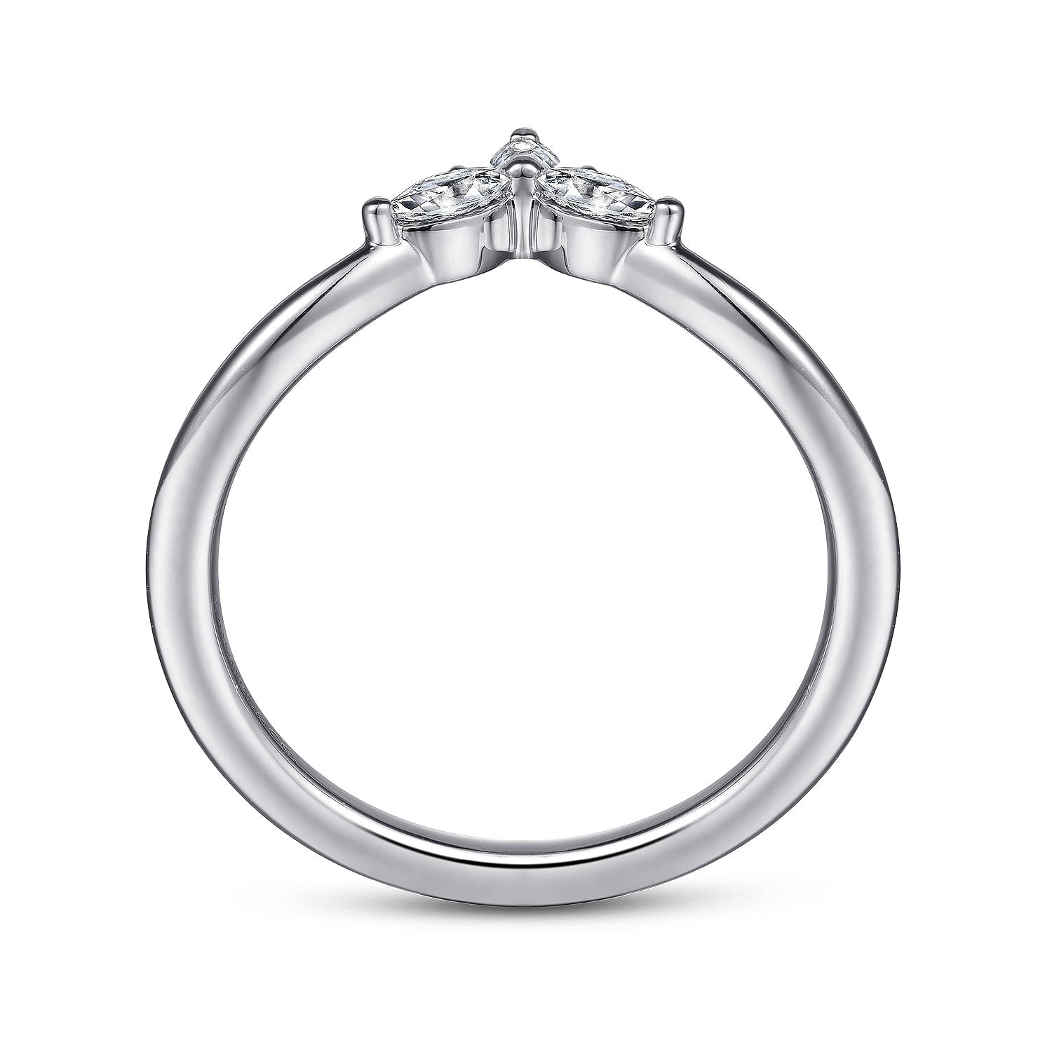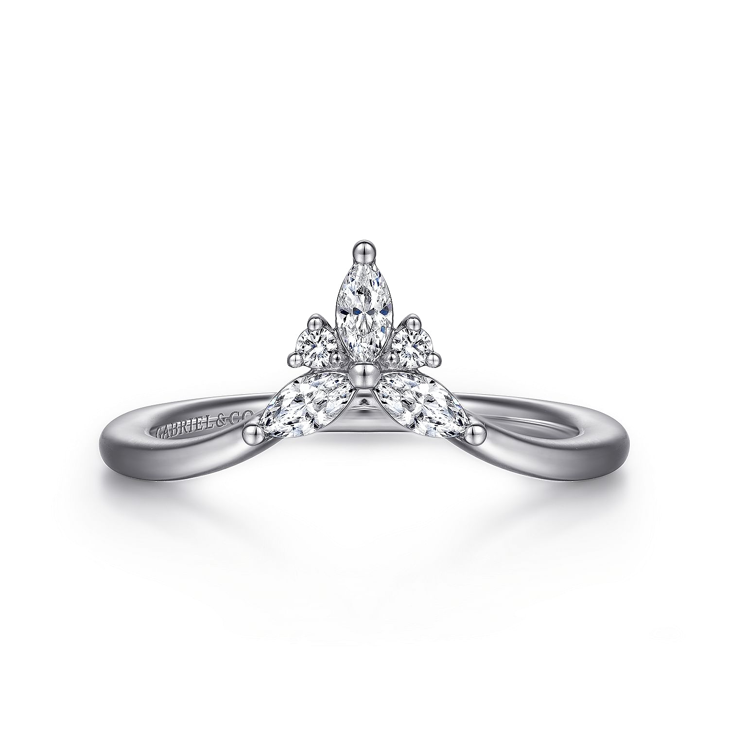 14K White Gold Curved Pear Shape and Round Diamond Anniversary Band