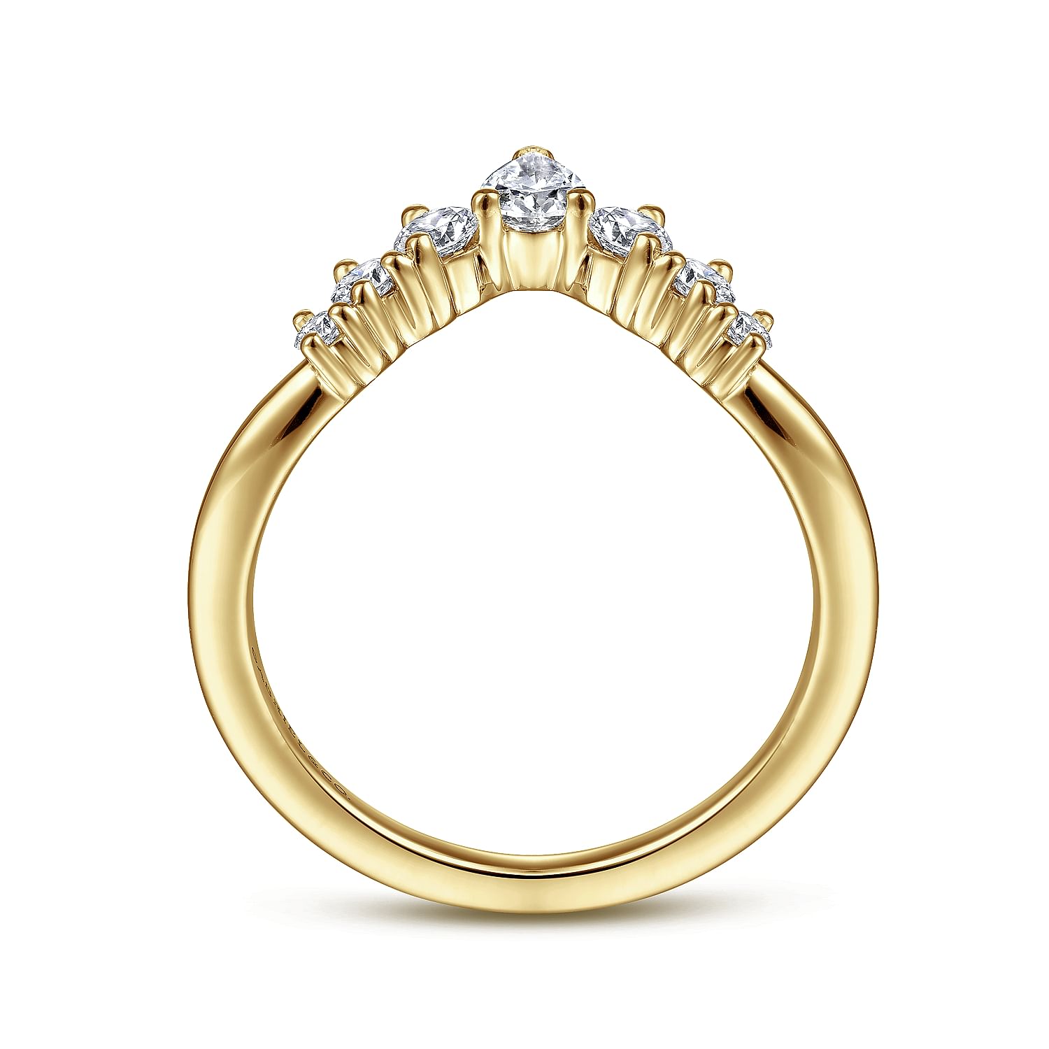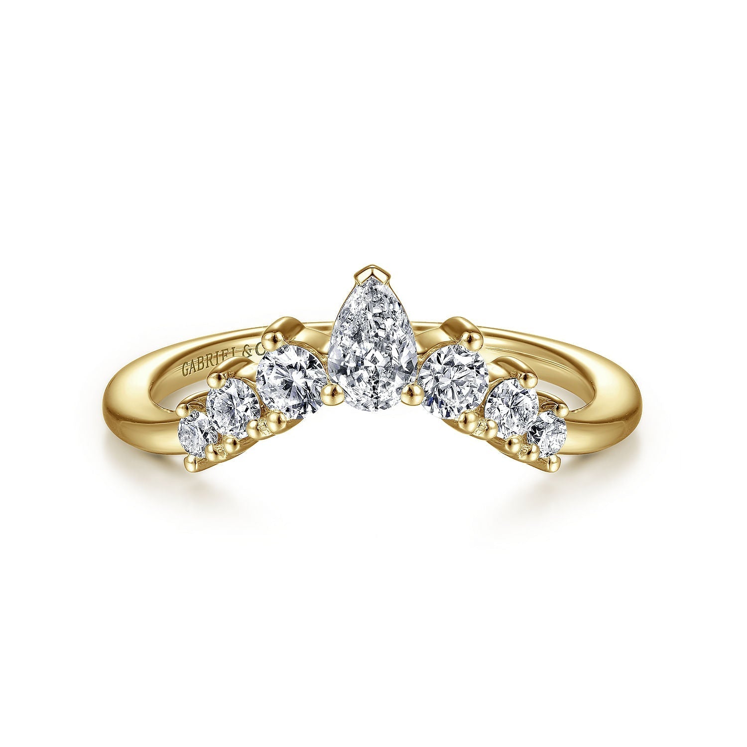 Curved-14K Yellow Gold Pear Shape and Round Diamond Anniversary Band