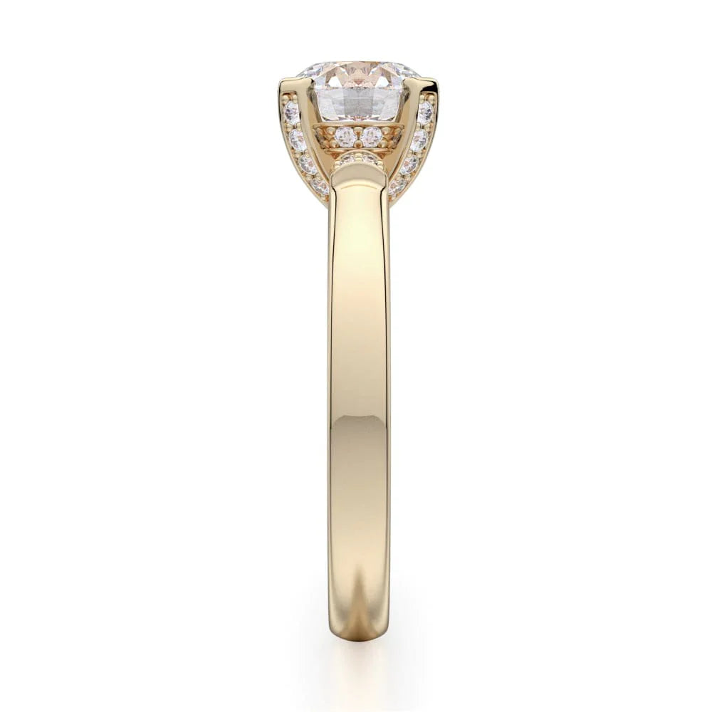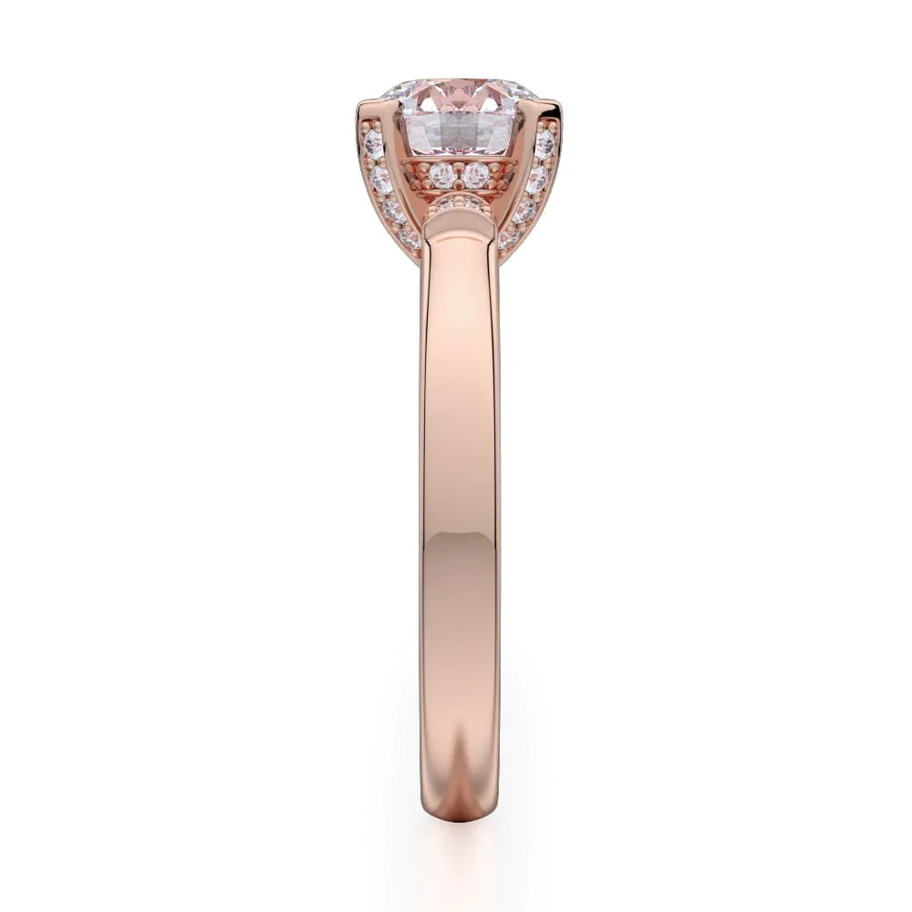 This MICHAEL M engagement ring is adorned with side diamonds handpicked by a certified MICHAEL M gemologist, each side stone has a minimum average color of G, a minimum average clarity of VS, and are hand-placed in an elegant prong setting by one of MICHAEL M’s master artisans.