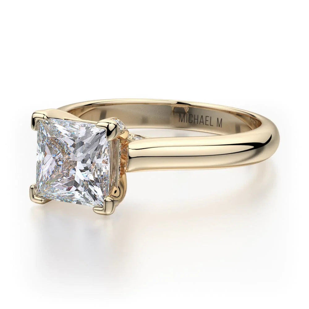 This MICHAEL M engagement ring is adorned with side diamonds handpicked by a certified MICHAEL M gemologist, each side stone has a minimum average color of G, a minimum average clarity of VS, and are hand-placed in an elegant prong setting by one of MICHAEL M’s master artisans.