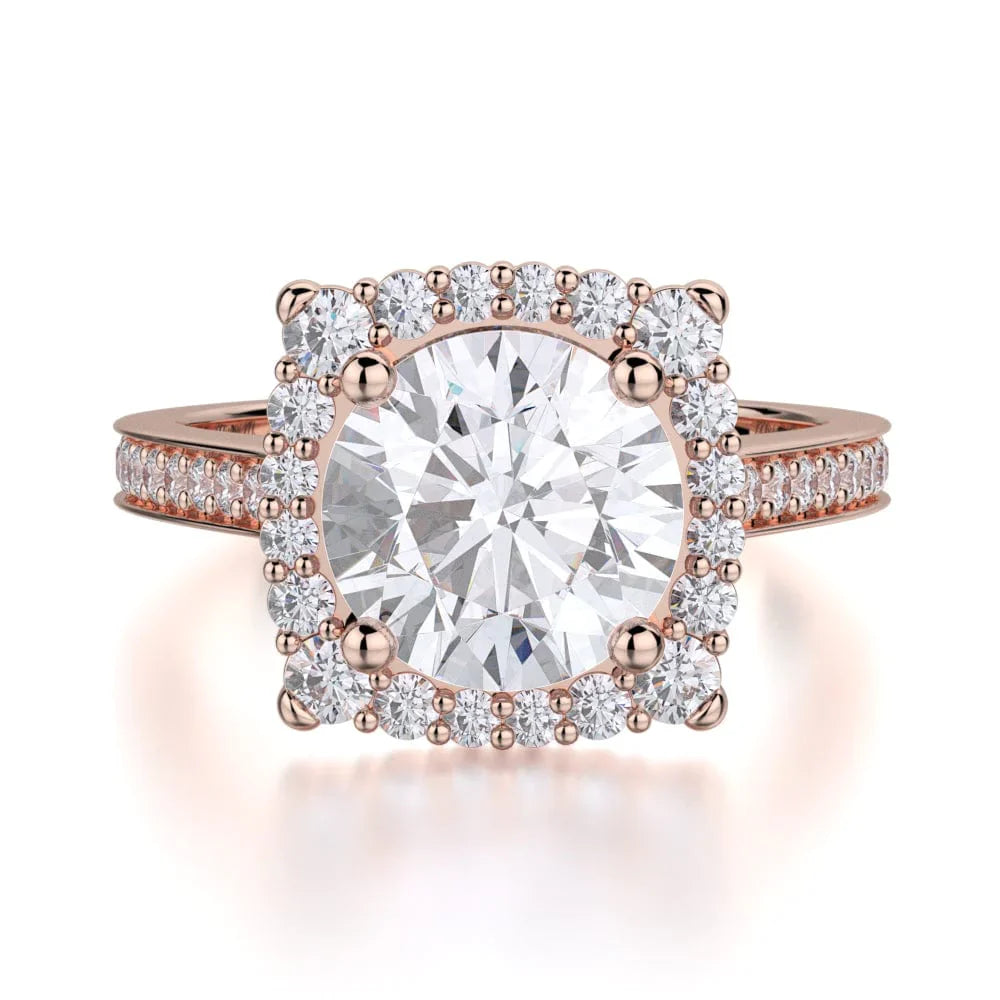 Immaculate Michael M engagement ring with stunning round center diamond setting. Adorned with over 0.58 carats of side diamonds. Crafted in exquisite 18-karat white gold for a timeless and elegant look.