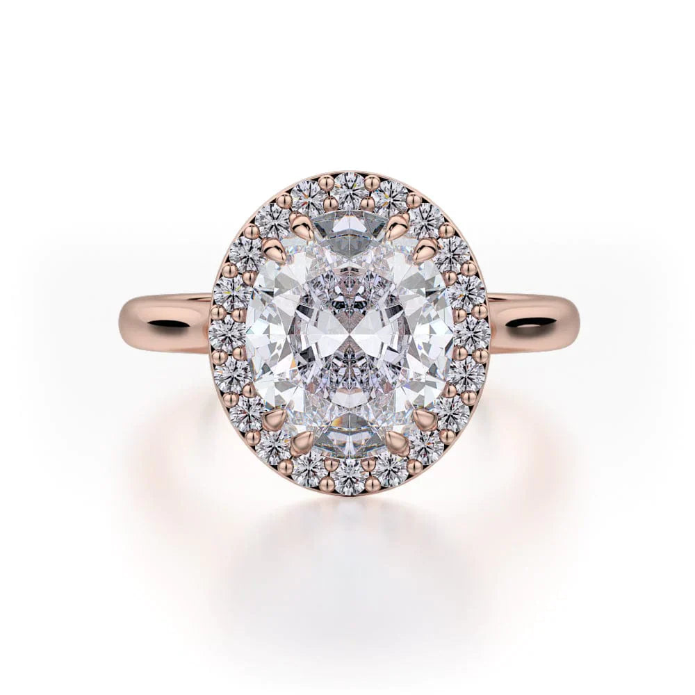 Immaculate Michael M engagement ring with oval center diamond setting for 2.40-2.60 carats. Adorned with over 0.30 carats of round cut side diamonds in elegant bezel setting. Crafted with exquisite 18-karat white gold for lasting beauty.