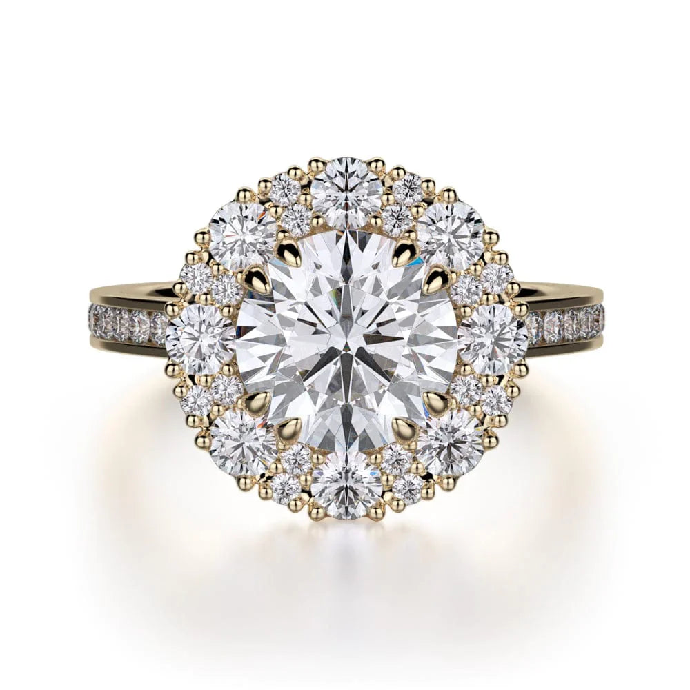Immaculate Michael M engagement ring with stunning round center diamond accommodation for 1.40-1.60 carats. Adorned with over 0.92 carats of side diamonds in elegant prong setting. Crafted with exquisite 18-karat white gold for lasting beauty.