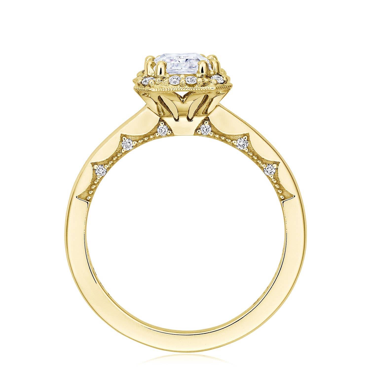 Love in bloom. The beauty in the simplicity of this emerald cut diamond engagement ring is amplified by the Coastal Crescent inner face, with a diamond-cuddled detailing underneath the crescent.