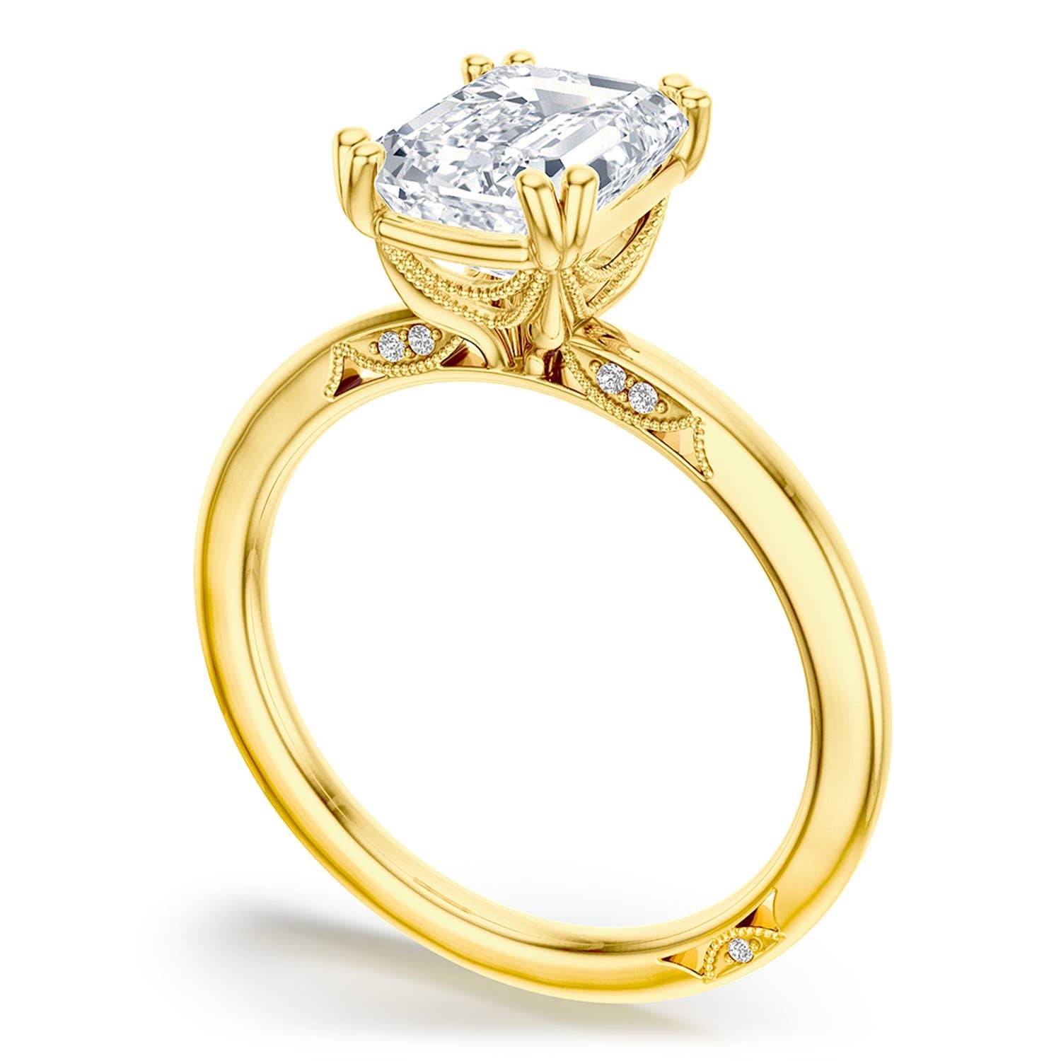 Inspired by the draping found in elegant bridal gowns.This Classic 360 solitaire features a high polish ceiling and a Simply Tacori inner face. Stunning milgrain details evoke couture bridal wear.