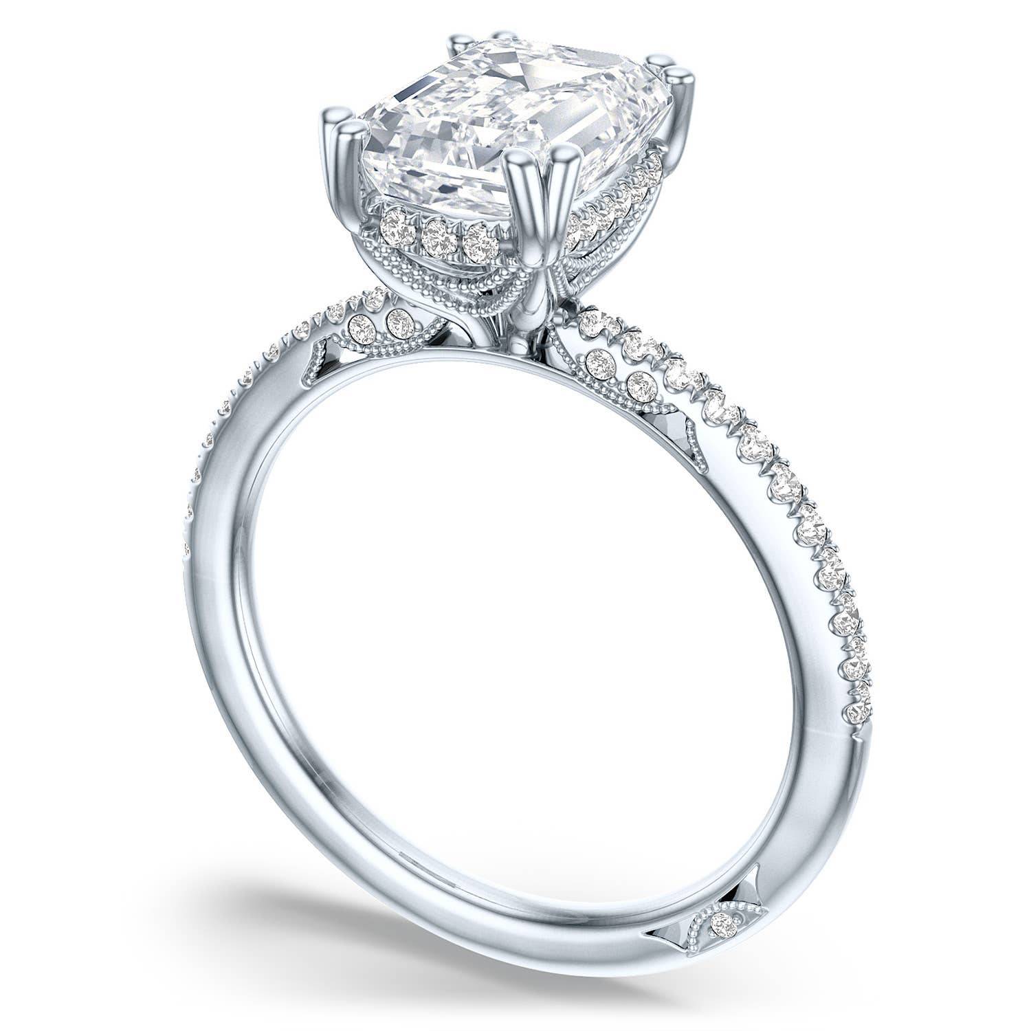 Inspired by the draping found in elegant bridal gowns.This Classic 360 solitaire features a pavé ceiling and a Simply Tacori inner face. Stunning milgrain details evoke couture bridal wear.