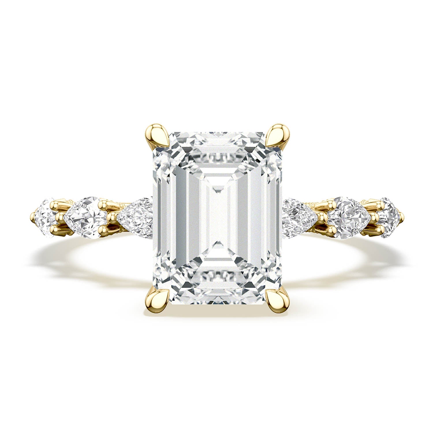This intricately detailed engagement ring puts a spotlight on pear-shaped diamonds. Diamond accents and beading enhance an elegant crown with hidden bloom detail and a Sculpted Crescent inner face with crescent signature at the resting point.