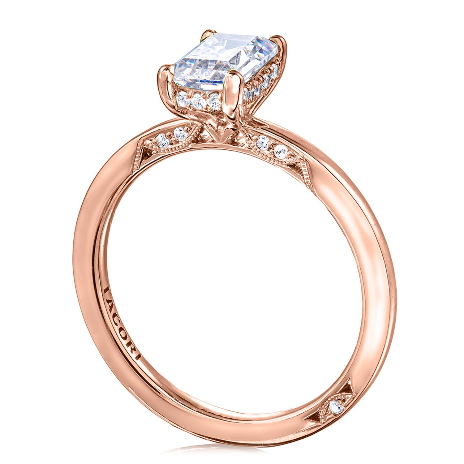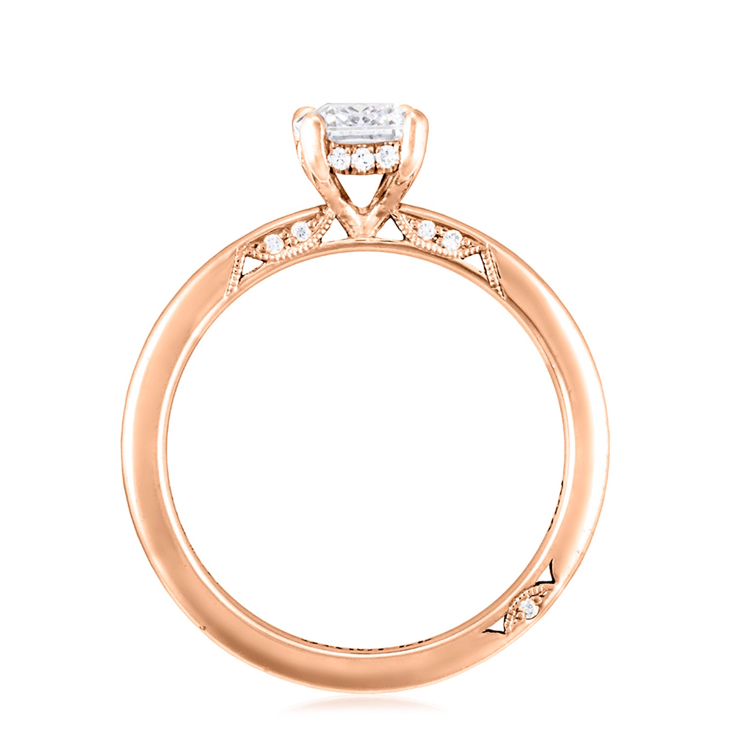 Features a Classic 360 foundation with a high polish finish. The iconic Simply Tacori crescent fabric decorates the ring with delicate diamond and milgrain detailing, while a hidden bloom beneath the crown adds an all-angles sparkle.