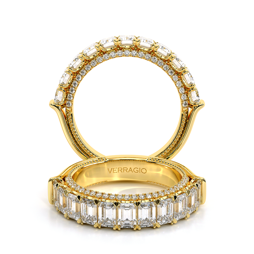 Eterna-2021-EM-4, Eternity band featuring Emerald cut diamonds going half way around. Our stunning half diamond riviera with round brilliant cut diamonds and signature beading completes this beauty.