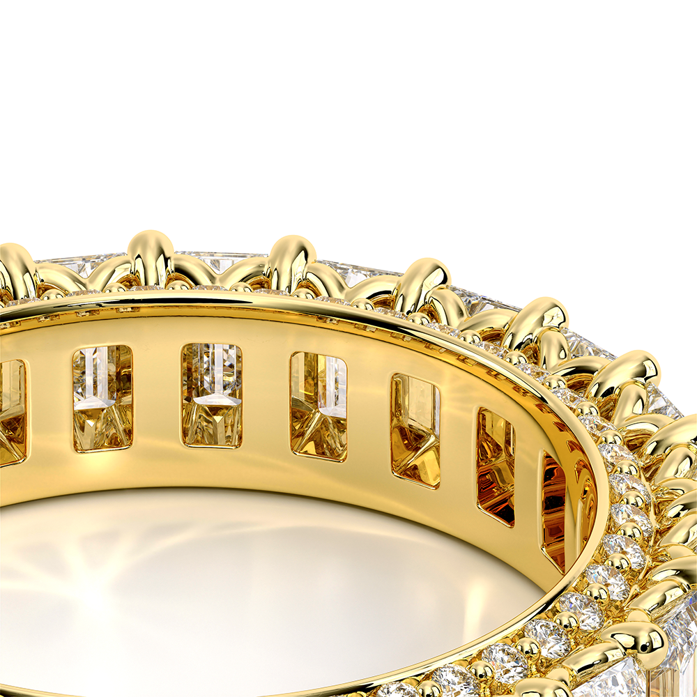 Eterna-2022-EM-4, A stunning Full Eternity band featuring Emerald cut diamonds going all the way around. Our signature half diamond riviera with round brilliant cut diamonds add on the opulence of this gorgeous band.