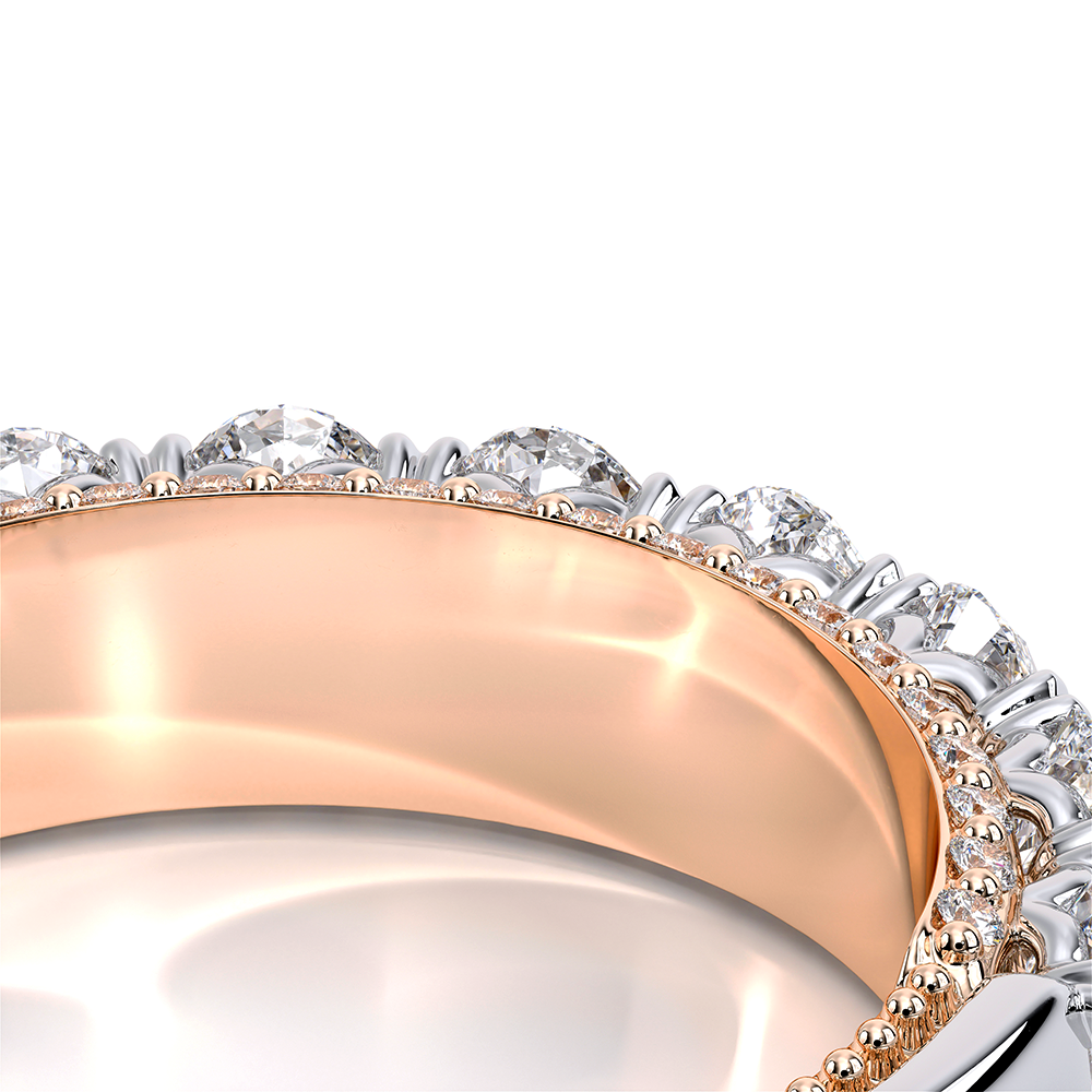 Eterna-2021-R-3-HW, Eternity style band featuring Oval cut diamonds going half way around. Our stunning half diamond riviera with round brilliant cut diamonds and signature beading come together to complete this beautiful piece.