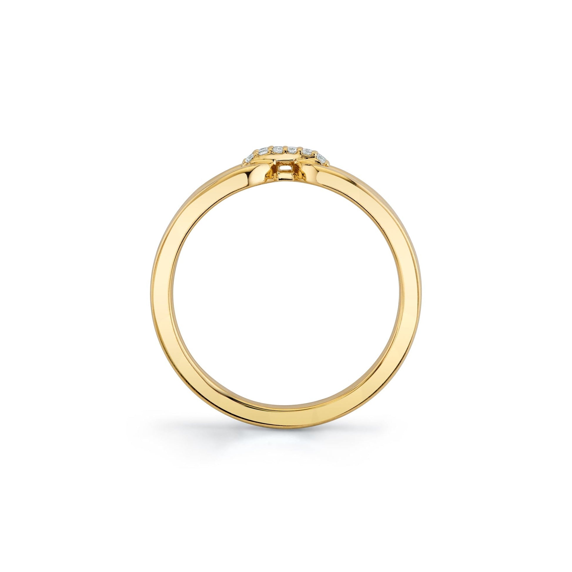 The Europa Interlink Ring showcases an expertly crafted design featuring a pave-set center loop that catches the light with subtle brilliance. Its tapered double band enhances the ring’s elegant profile, providing both visual interest and comfortable wear. This piece combines refined detailing with a modern silhouette, making it an ideal choice for those seeking a sophisticated accessory that seamlessly blends timeless craftsmanship with contemporary style.