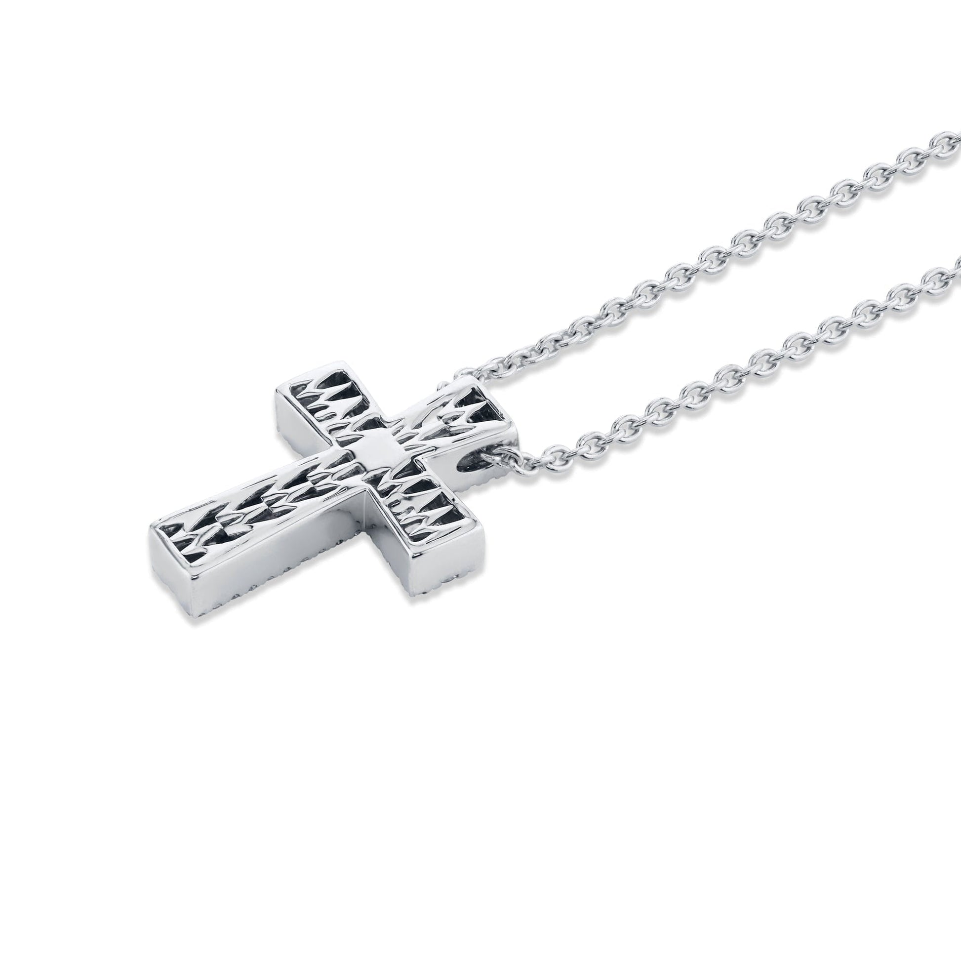 The Europa Pave Cross Pendant is a masterful blend of craftsmanship and elegance, featuring a striking design with tapering round diamonds at its center. These diamonds are meticulously set to create a radiant focal point, surrounded by two rows of finely detailed outside pave that enhance the pendant’s brilliance and depth. This pendant not only serves as a timeless symbol of faith but also as a sophisticated accessory that elevates any ensemble. Expertly crafted to catch the light from every angle, it offers both exceptional sparkle and enduring style for those who appreciate refined jewelry artistry.