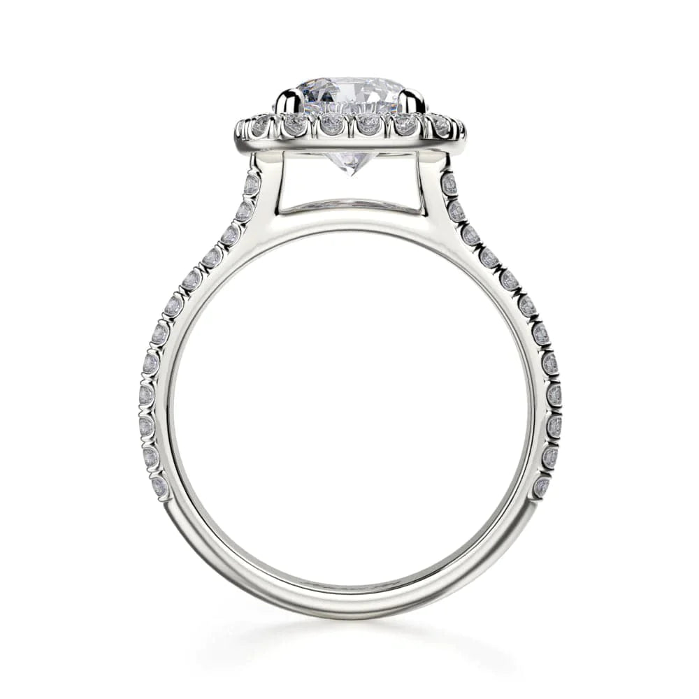Immaculate Michael M engagement ring with stunning round center diamond setting (diamond not included). Adorned with over 0.68 carats of side diamonds, set in elegant prong setting. Crafted with exquisite 18-karat white gold for lasting beauty.