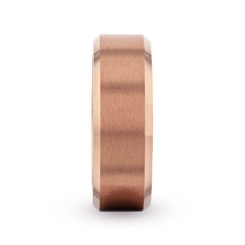 GLORY Rose Gold Plated Brushed Finish Center Titanium Men's Wedding Band With Polished Beveled Edges - 8mm