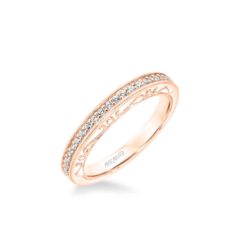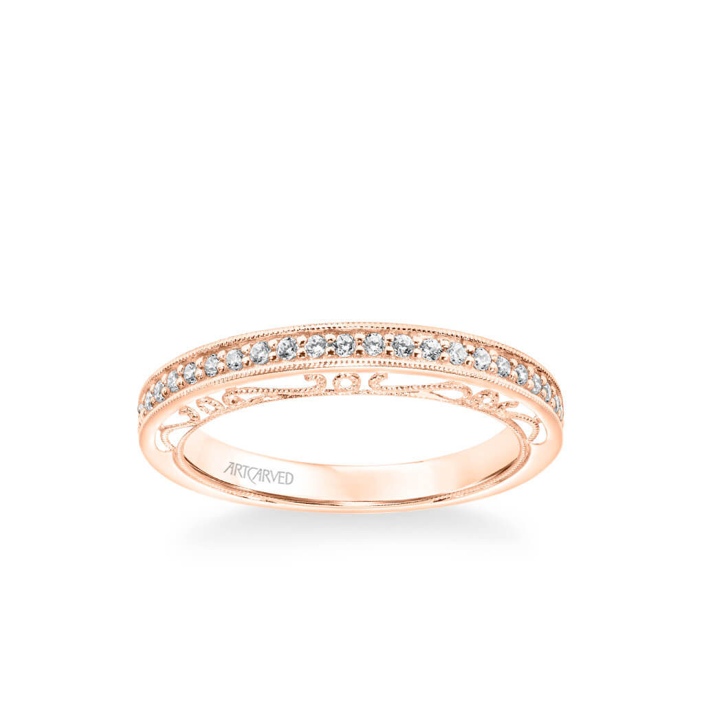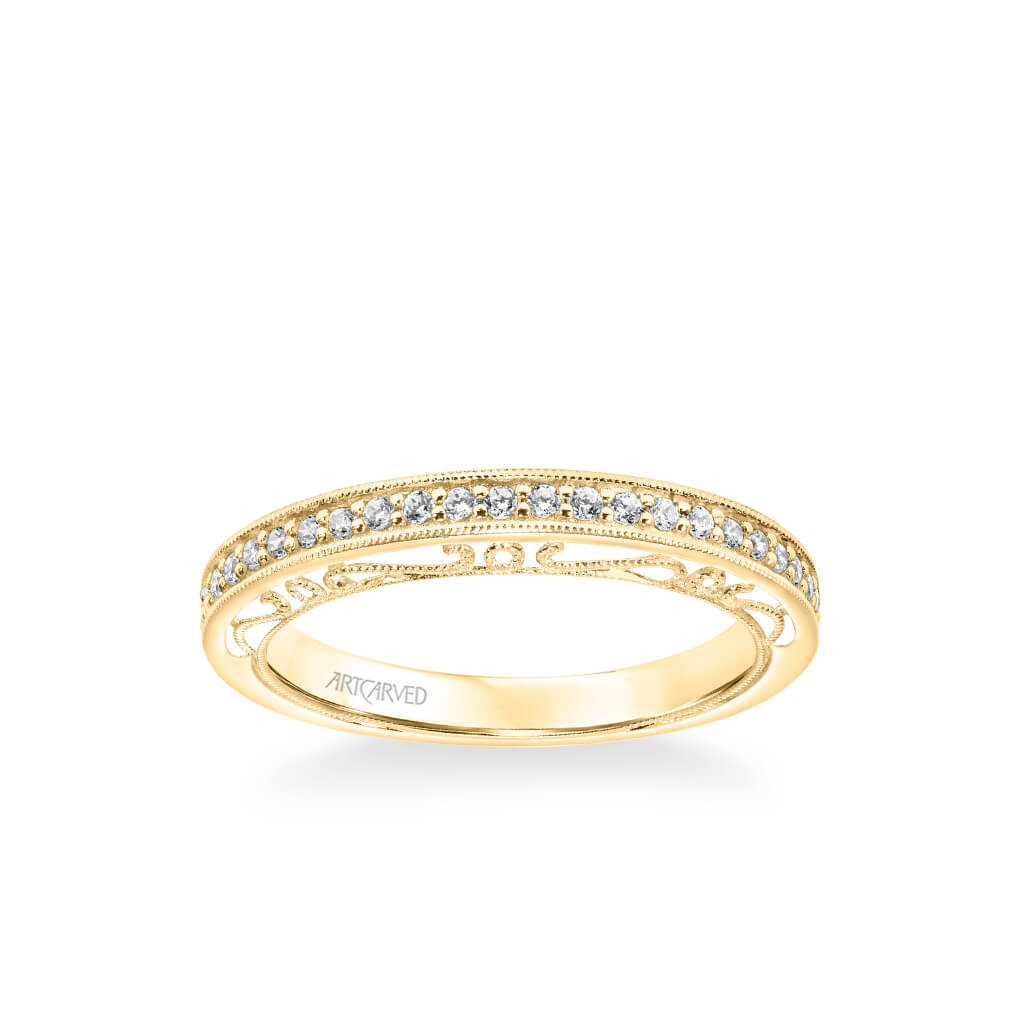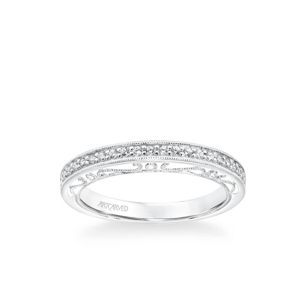 This Heritage Collection Diamond Wedding Band has so many beautiful details. A stunning row of shimmering diamonds is enhanced by the intricate vintage inspired filigree scrollwork with milgrain accents.