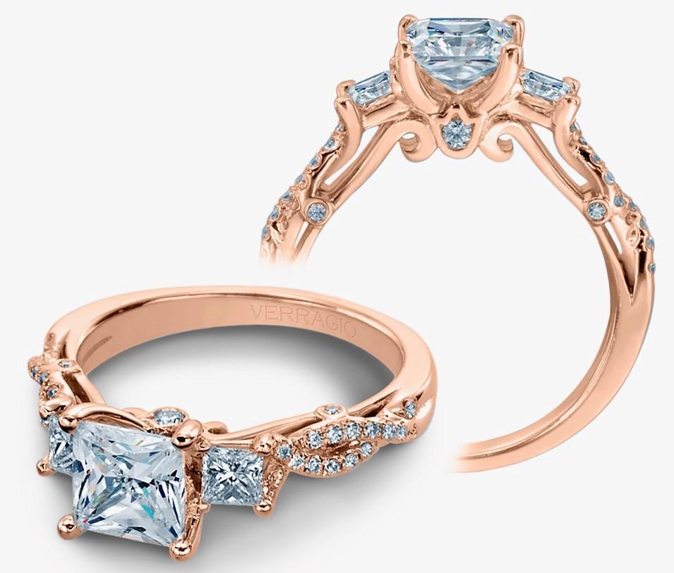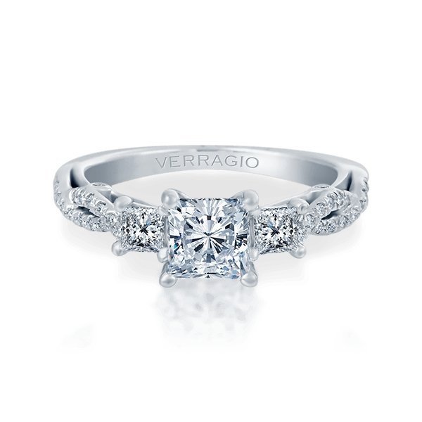 Elevate your love story with the mesmerizing Verragio Women's Engagement Ring from the exquisite INSIGNIA Collection. Featuring a trio of Princess cut diamonds and a gracefully entwined band adorned with diamonds, this stunningly stylish ring is sure to capture hearts.