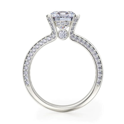 Exquisite Michael M engagement ring with stunning center diamond accommodation for 1.85-2.10 carats. Immaculately adorned with over 0.95 carats of side diamonds in elegant pave setting. Crafted with 18-karat white gold for lasting beauty.