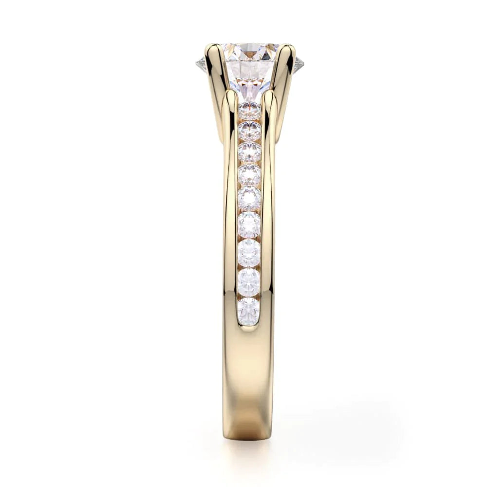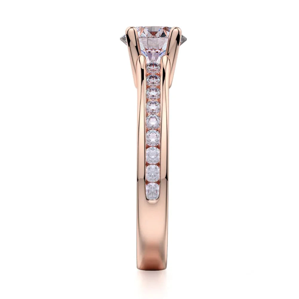 Elegantly crafted, the LOVE R461-1 ring features a row of channel-set diamonds and a floating prong-set center stone. From the Love Collection, this MICHAEL M ring exudes tasteful luster with its slim design and signature micropavé diamond setting. Available in 18K Rose Gold, White Gold, Yellow Gold, or Platinum.