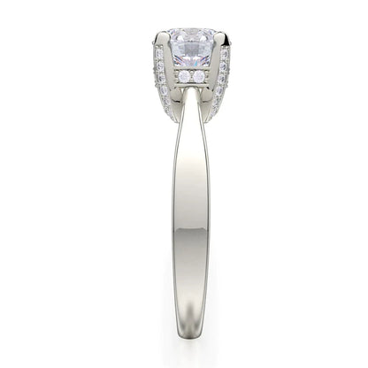 Elegantly crafted Michael M engagement ring with center stone accommodation for diamonds ranging from 0.90 to 1.10 carats. Immaculate design adorned with over 0.16 carats of side diamonds in a pave setting.