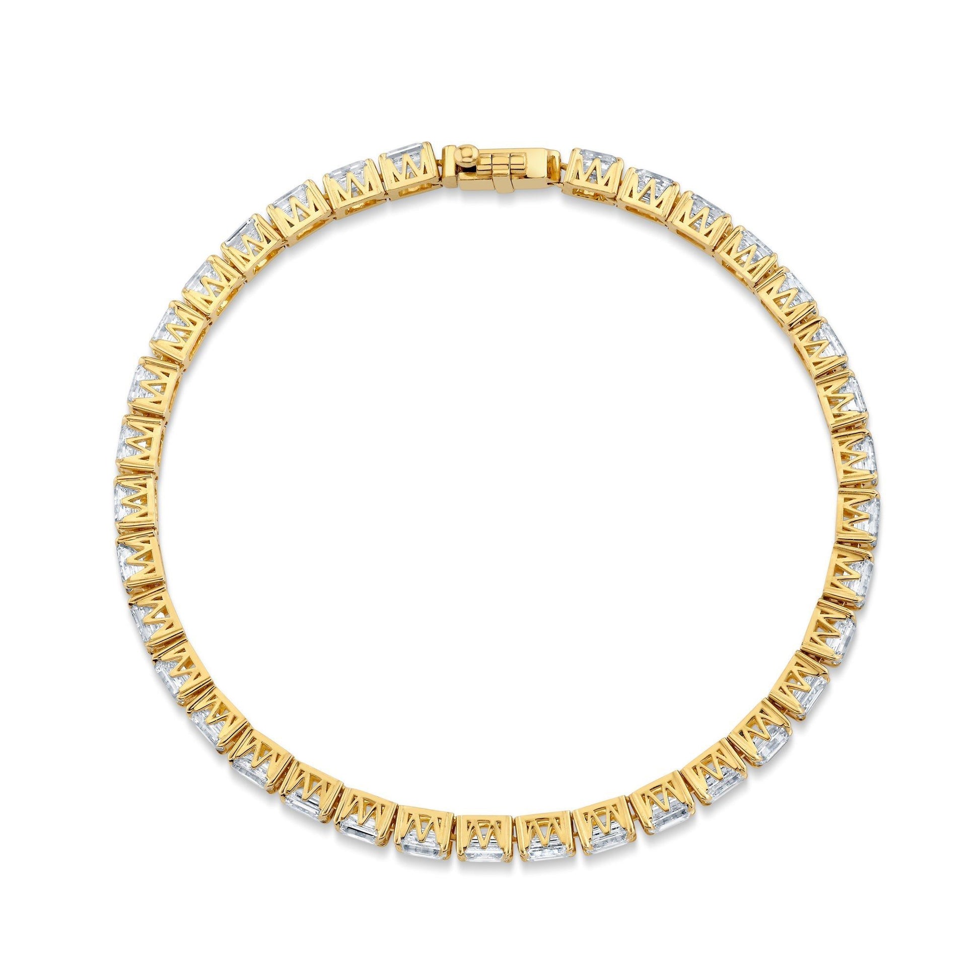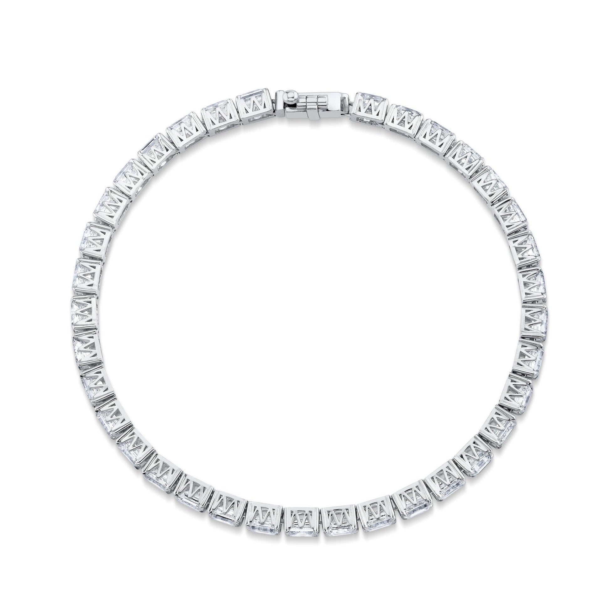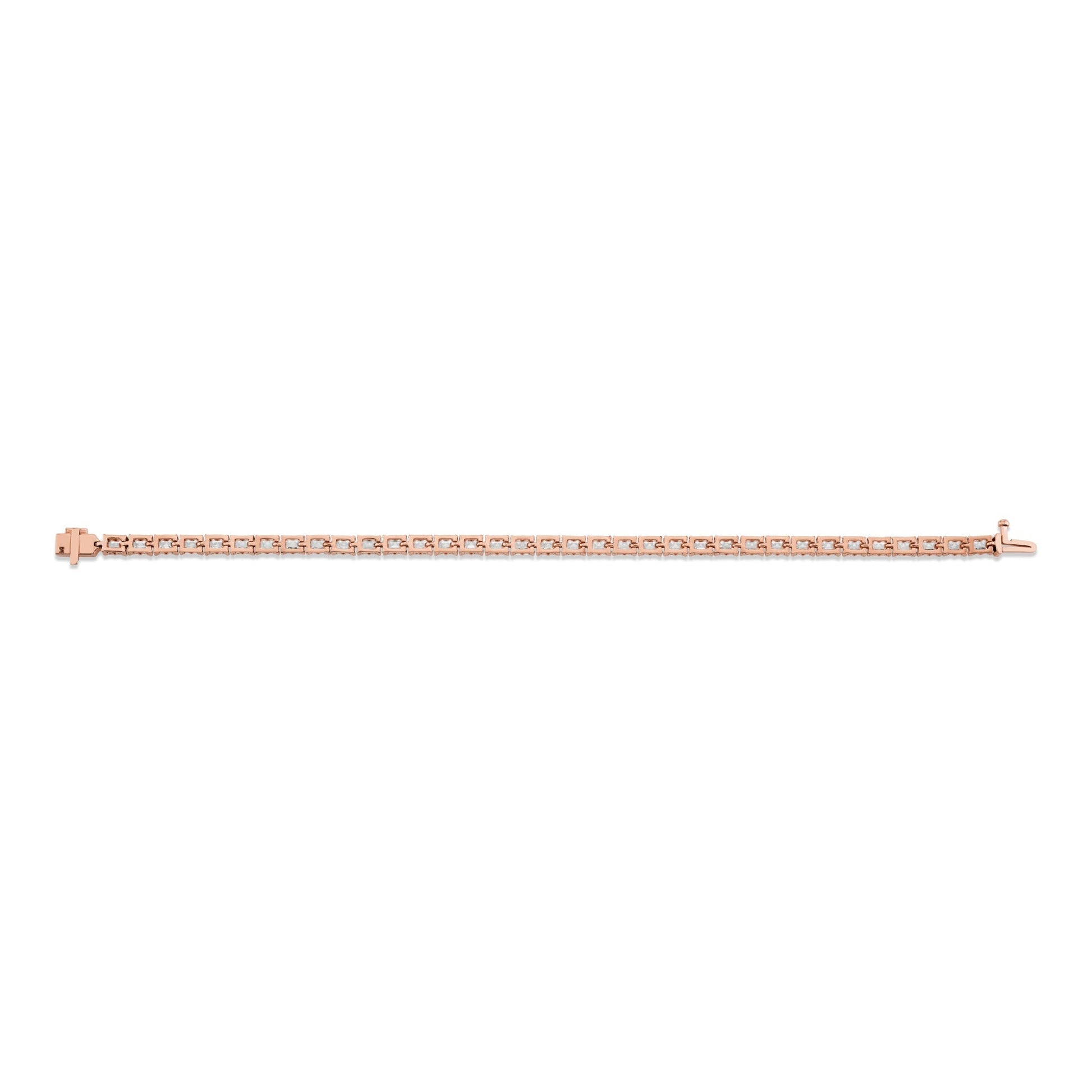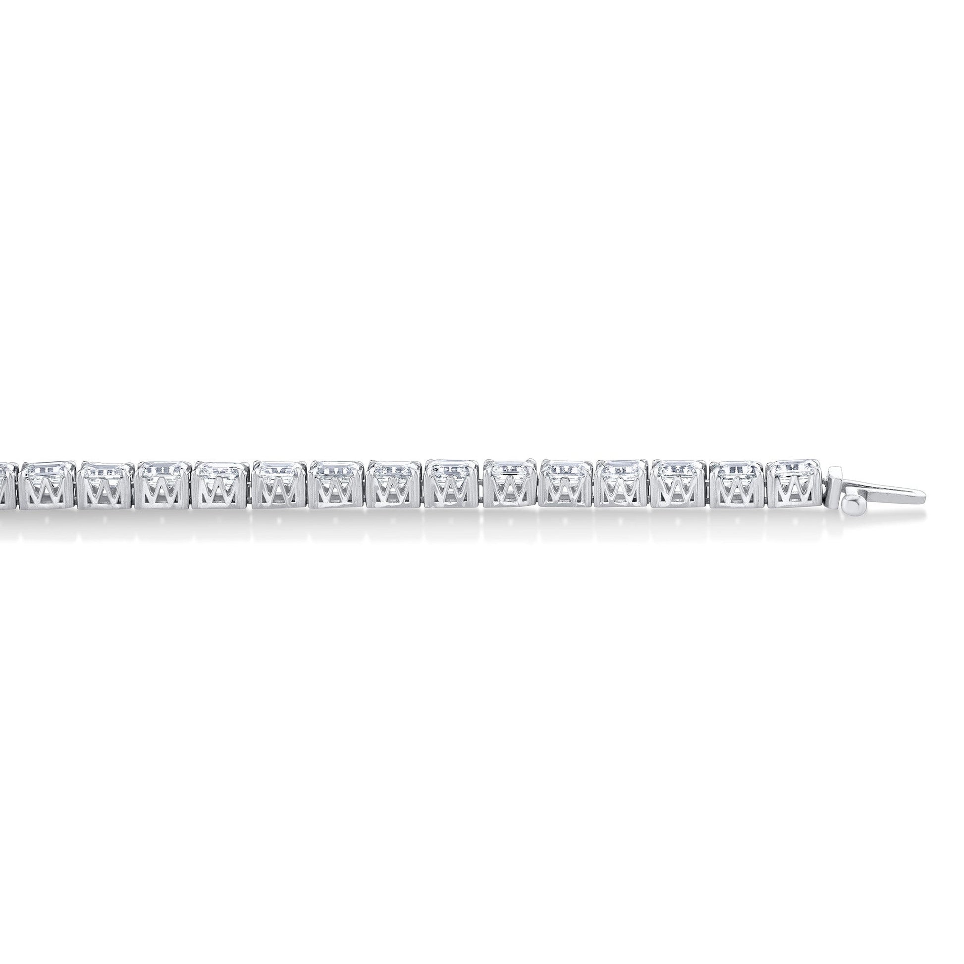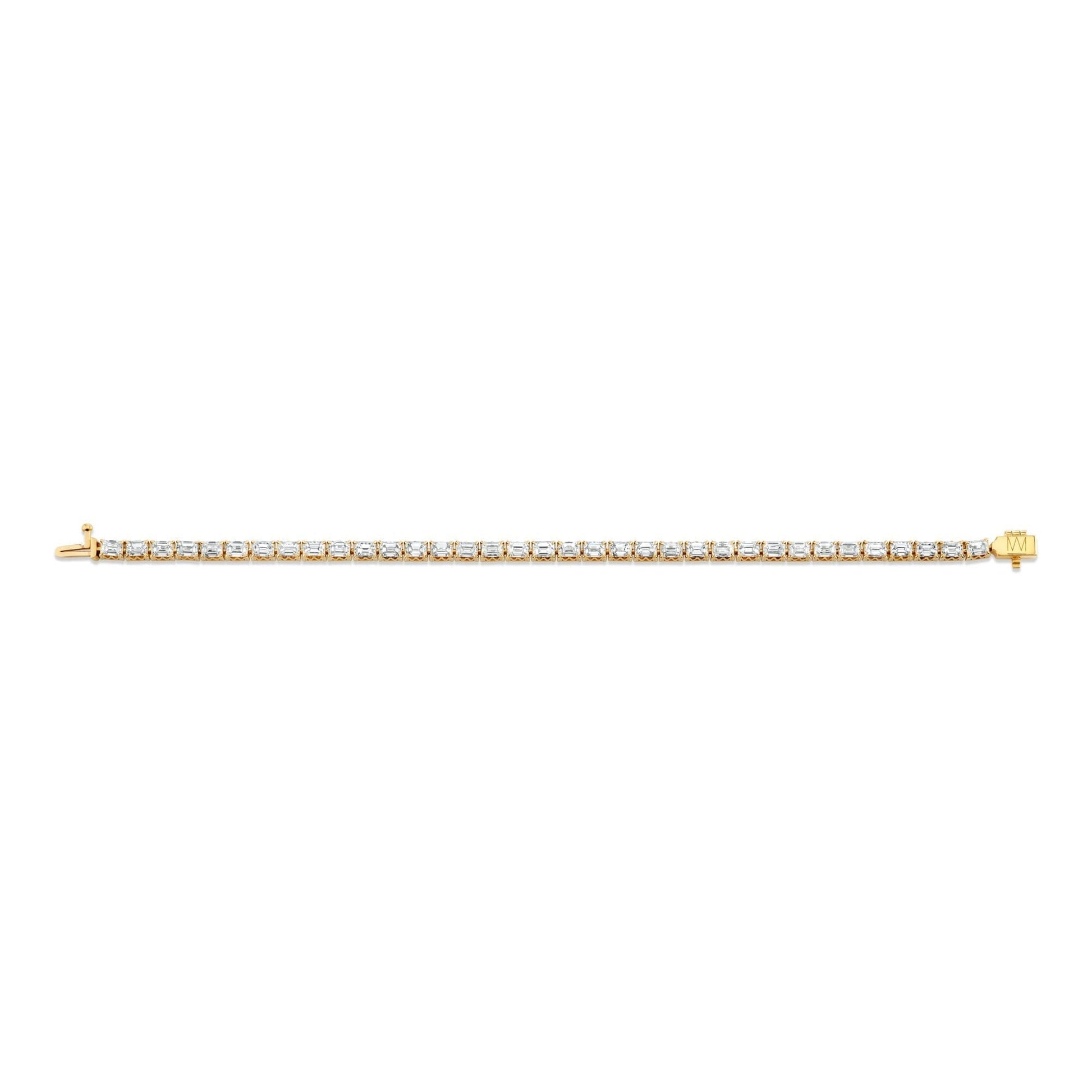 The Meksian Emerald Tennis Bracelet petite combines timeless elegance with expert craftsmanship. Featuring emerald-cut diamonds, each stone is securely held in the unique patented Meksian "M" Silhouette, ensuring both durability and a distinctive design. This bracelet offers a refined sparkle that complements any ensemble, making it an essential piece for those who appreciate classic style with a modern twist. Its meticulous construction guarantees lasting beauty and comfort, perfect for daily wear or special occasions. Elevate your jewelry collection with this expertly crafted symbol of sophistication and grace.