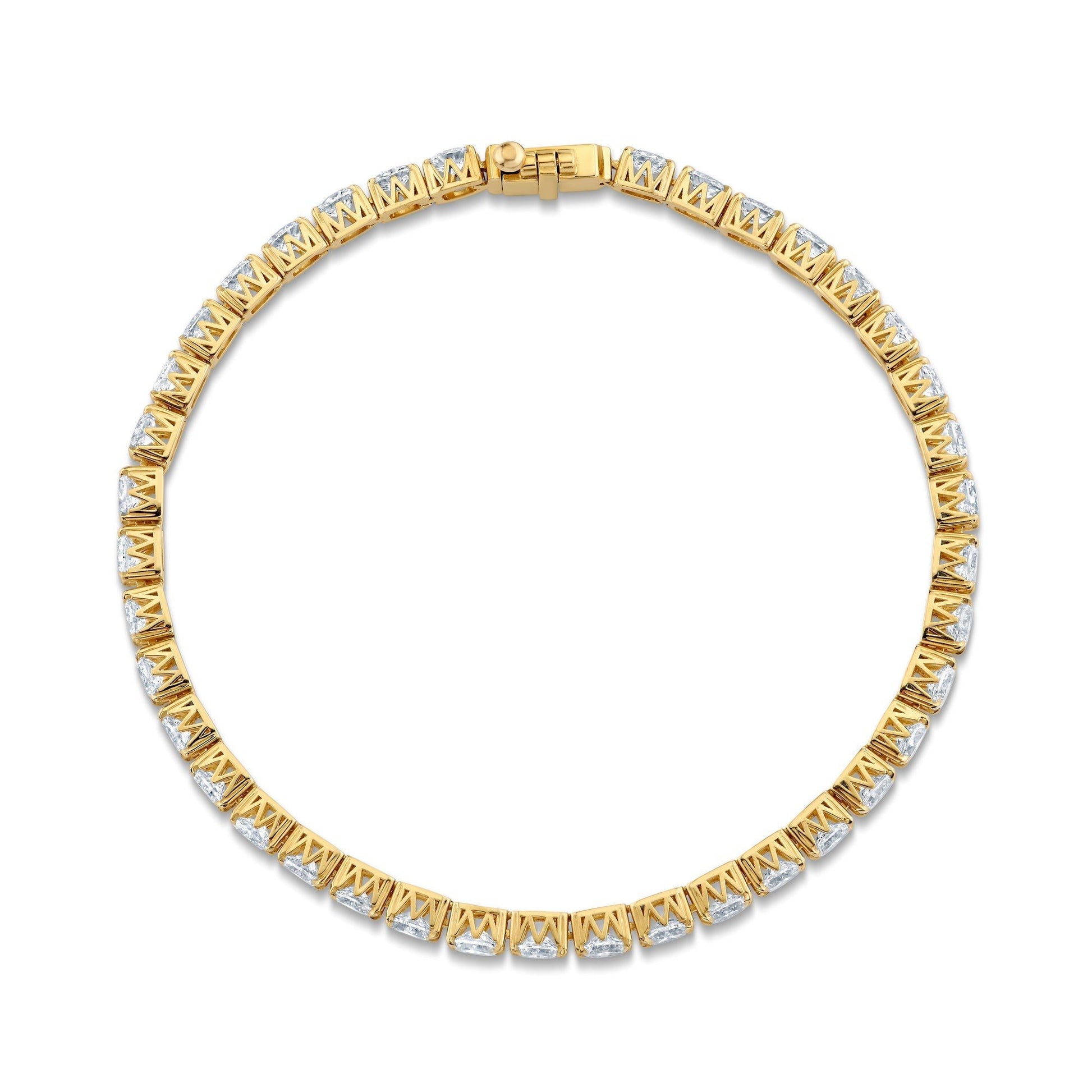 The Meksian Oval Tennis Bracelet combines timeless elegance with expert craftsmanship. Featuring oval-cut diamonds, each stone is securely held in the unique patented Meksian "M" Silhouette ensuring both durability and a distinctive design. This bracelet offers a refined sparkle that complements any ensemble, making it an essential piece for those who appreciate classic style with a modern twist. Its meticulous construction guarantees lasting beauty and comfort, perfect for daily wear or special occasions. Elevate your jewelry collection with this expertly crafted symbol of sophistication and grace.