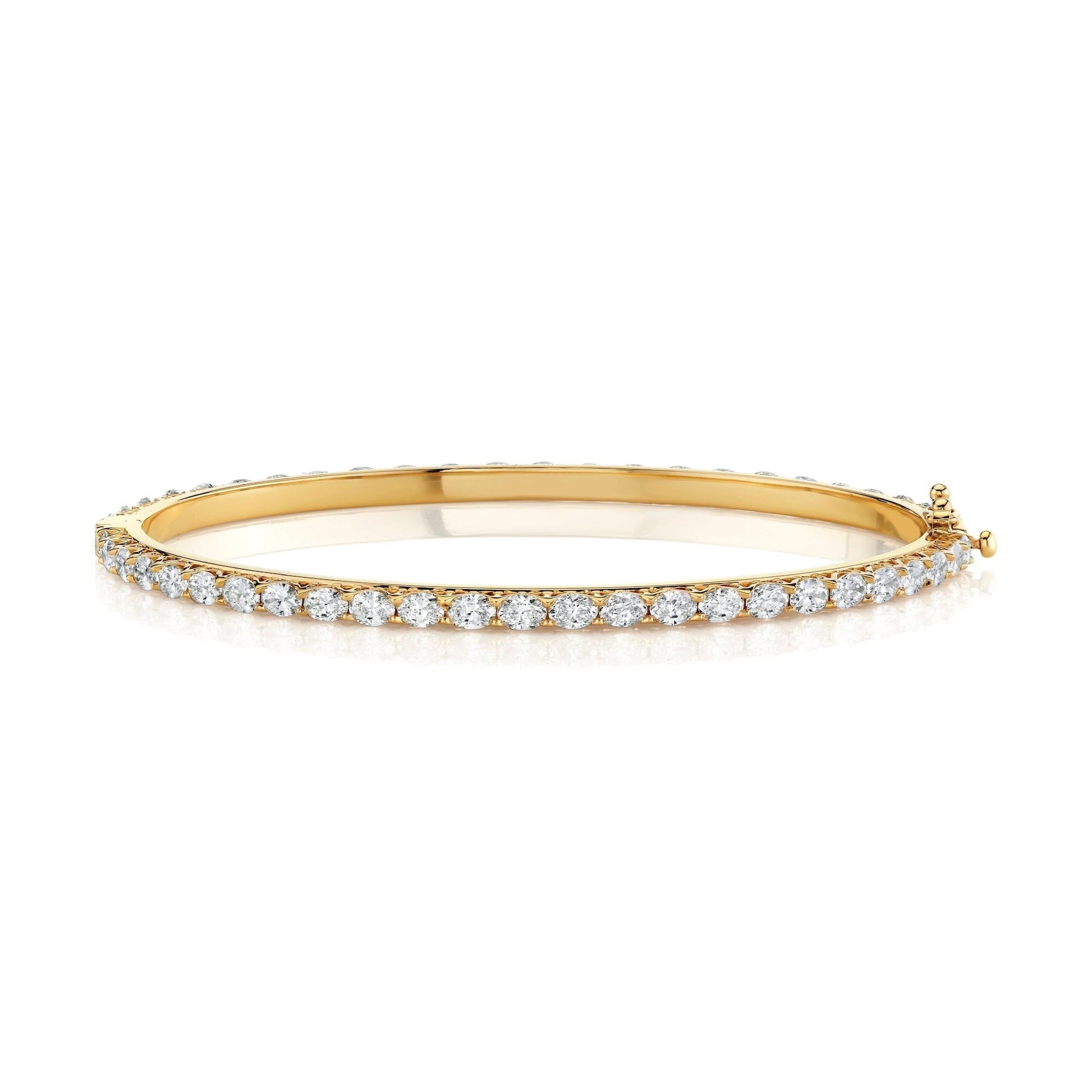 The Meksian Oval Tennis Bangle combines timeless elegance with expert craftsmanship. Featuring oval-cut diamonds, each stone is securely held in the unique patented Meksian "M" setting, ensuring both durability and a distinctive design. This bracelet offers a refined sparkle that complements any ensemble, making it an essential piece for those who appreciate classic style with a modern twist. Its meticulous construction guarantees lasting beauty and comfort, perfect for daily wear or special occasions. Elevate your jewelry collection with this expertly crafted symbol of sophistication and grace.