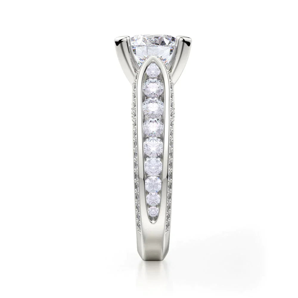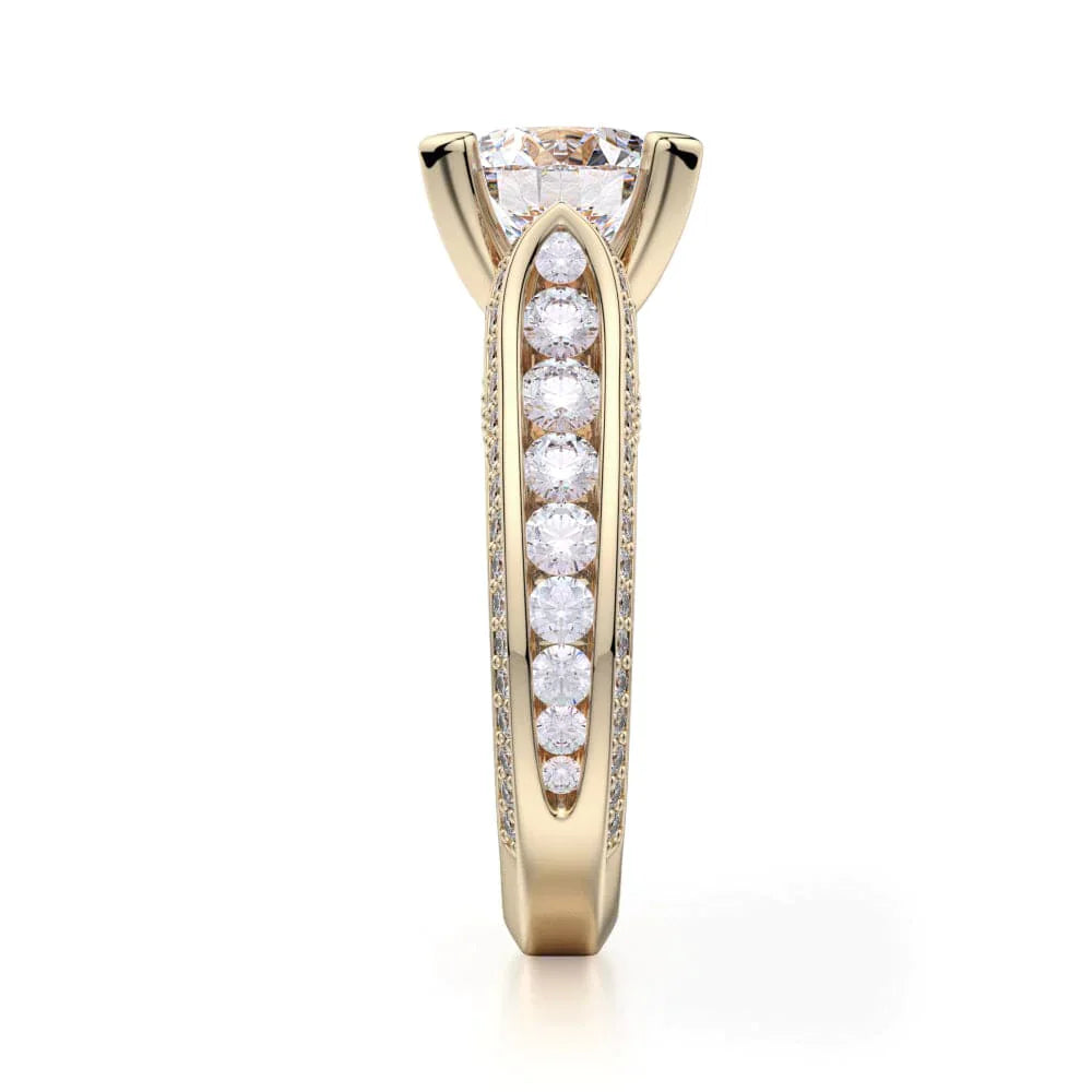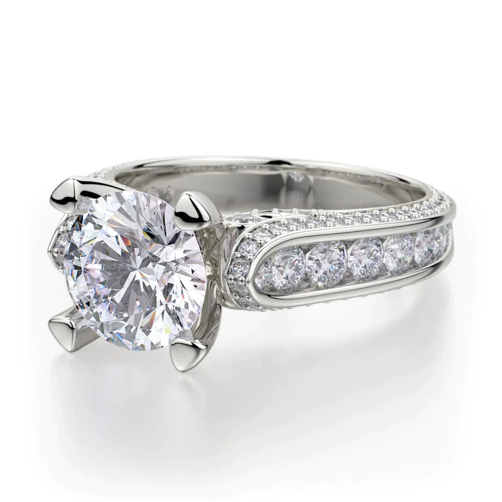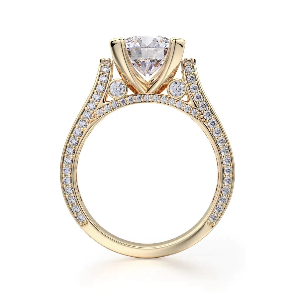 Elegantly crafted MICHAEL M ring with center diamond and accent stones. Stella Collection offers bold, handcrafted engagement rings with attention to detail. Customizable in 18K Rose Gold, White Gold, Yellow Gold, or Platinum.