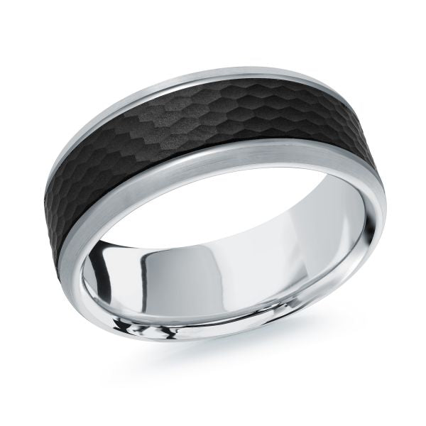 Malo 14K Carbon Fiber and White Gold Men's Wedding Band 8mm MRDA-131-8W