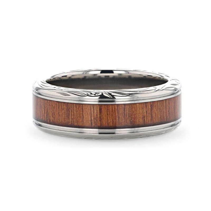 OHANA Koa Wood Inlaid Titanium Men's Wedding Ring with Intricate Edges - 6mm - 10mm