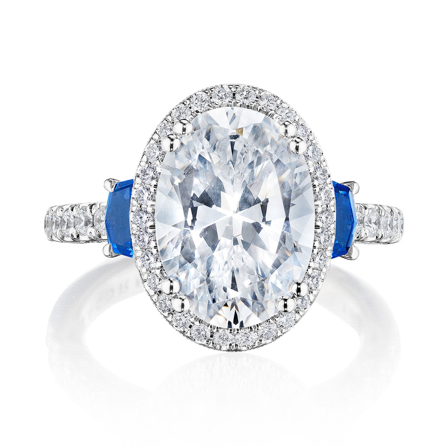 Oval 3-Stone Engagement Ring with Blue Sapphire